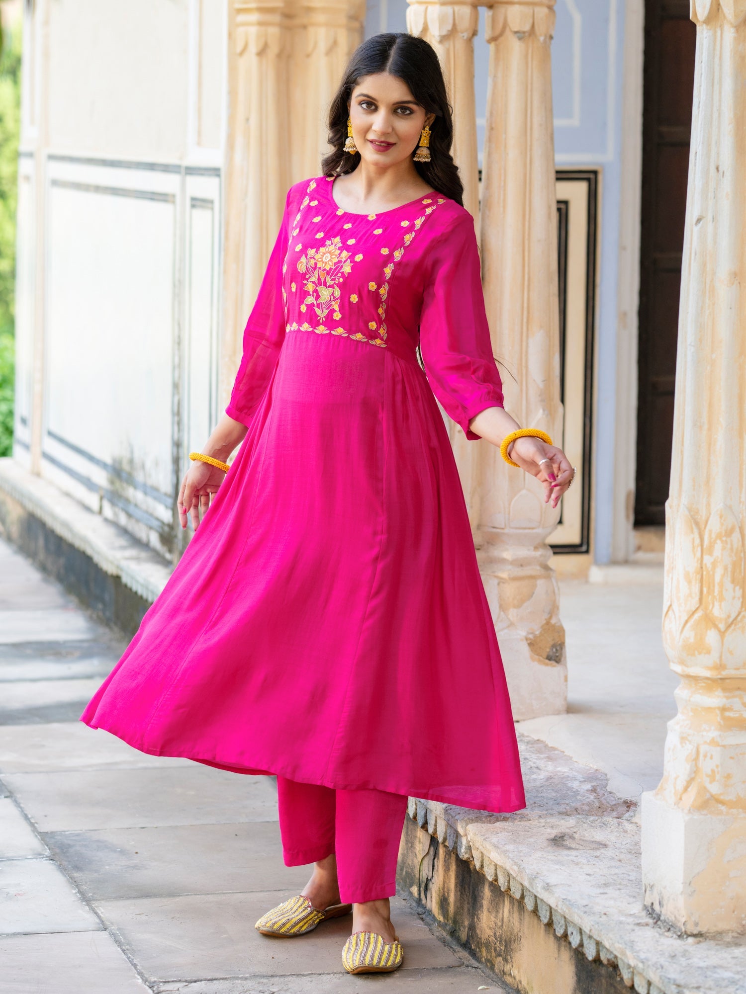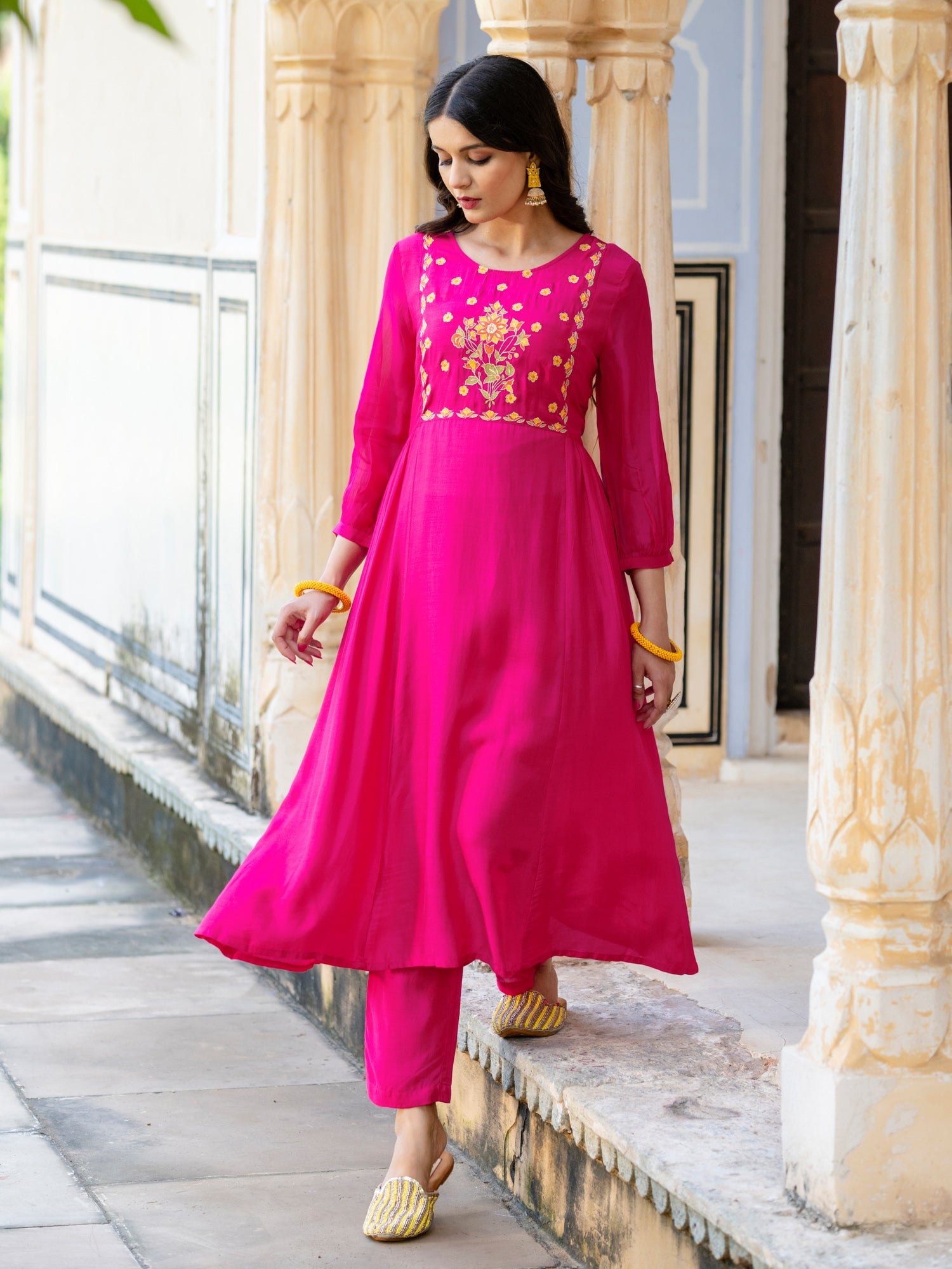 Pink Viscose Floral Embroidered Co-Ord Set