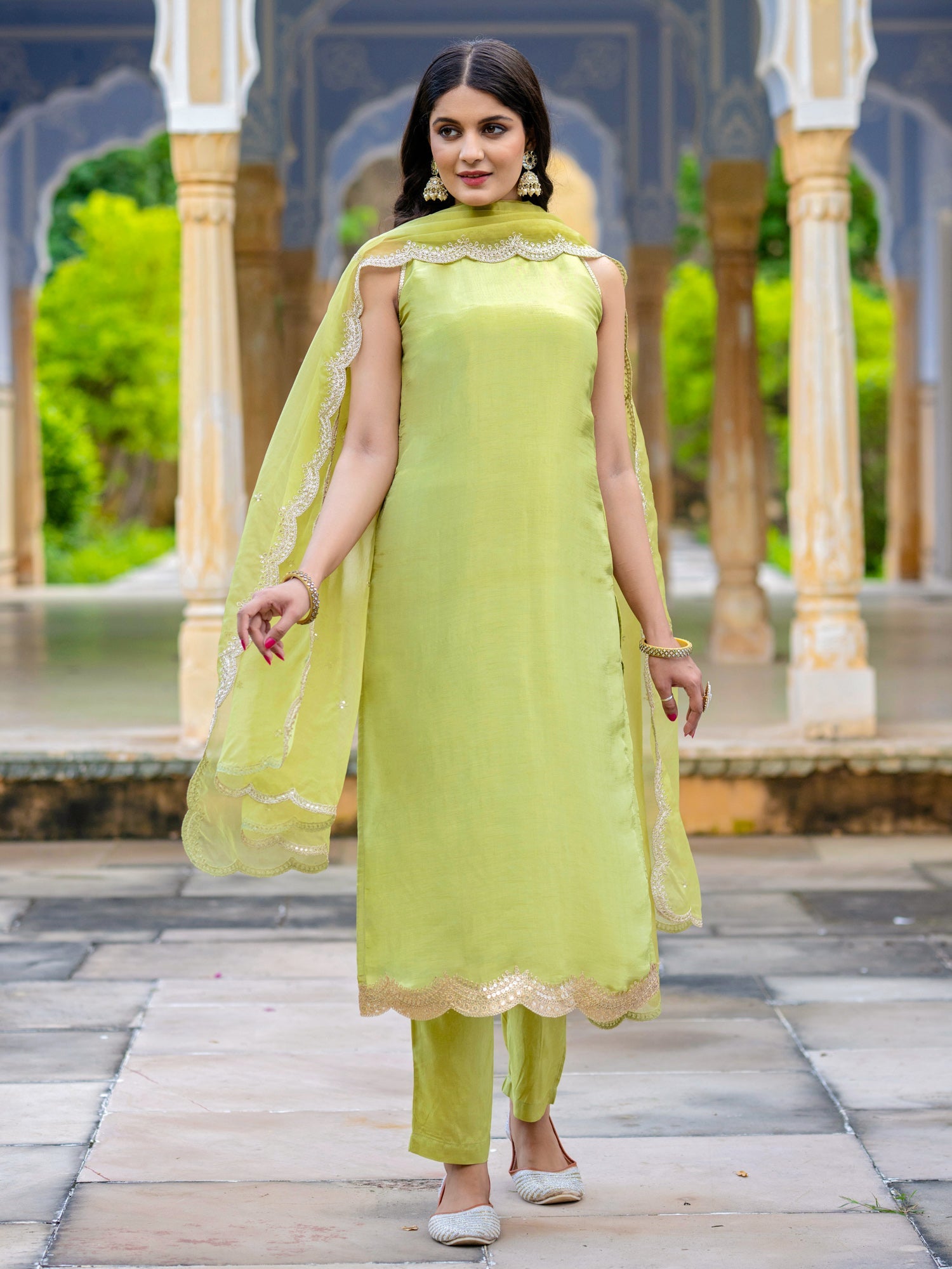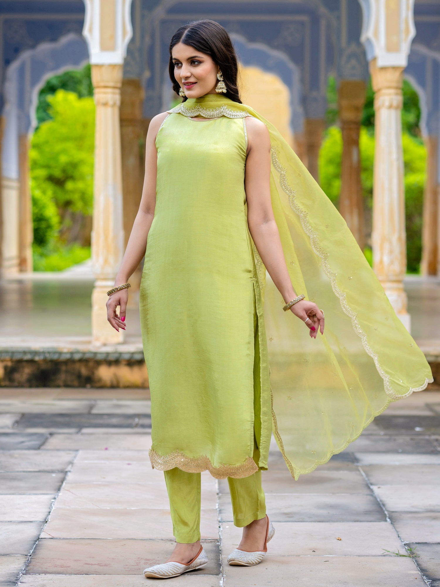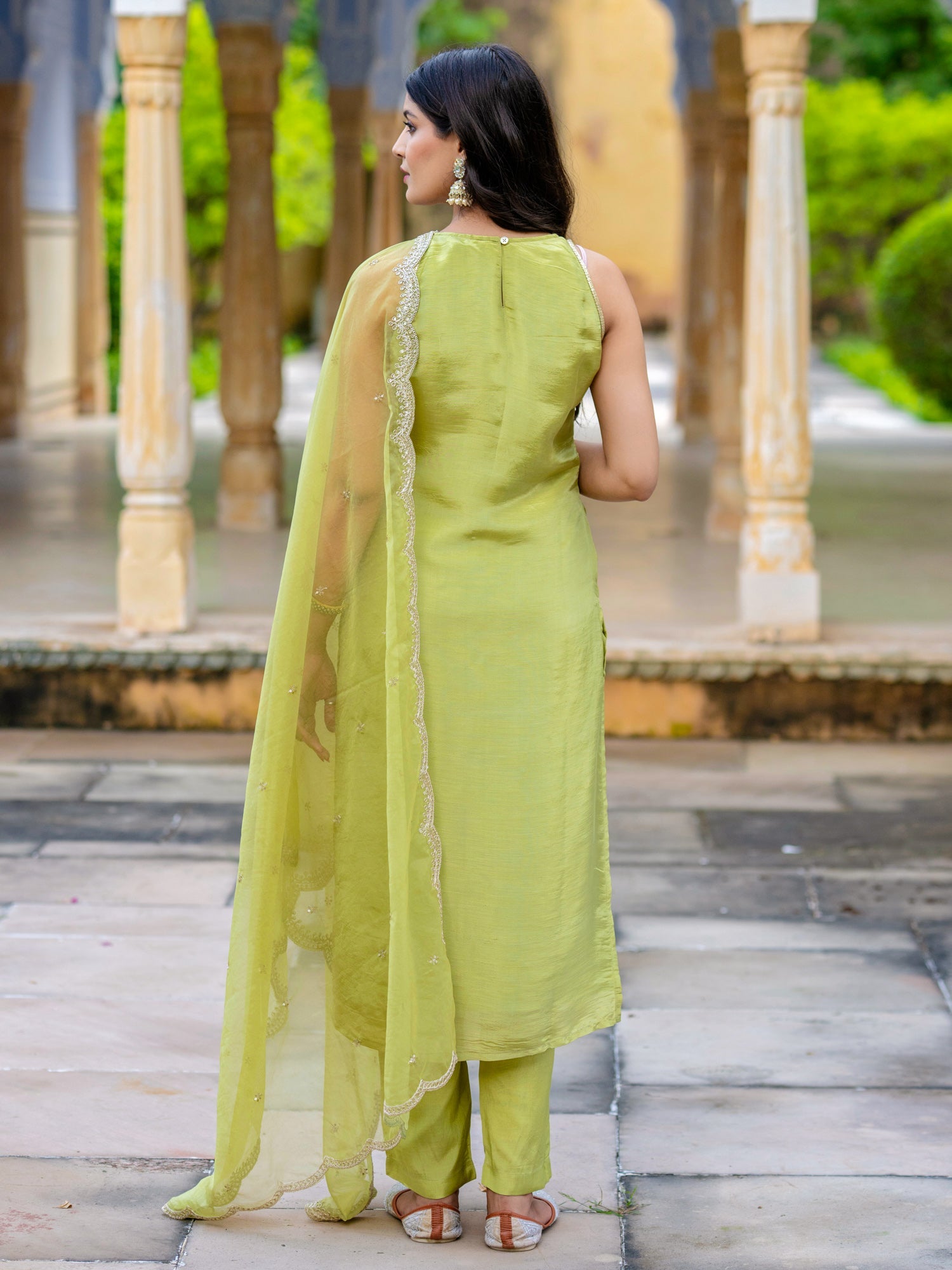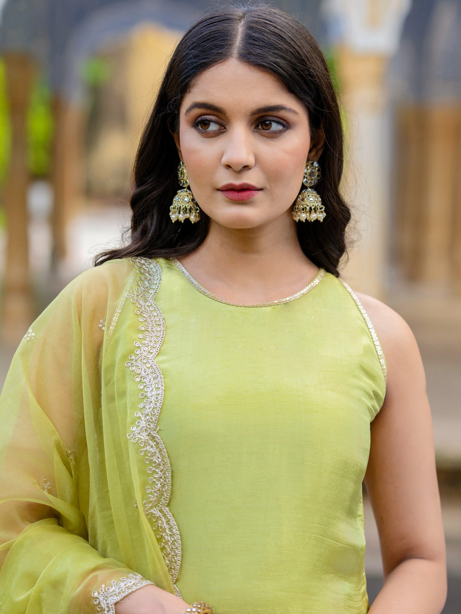 Green Tissue Halter Neck Kurta Set With Dupatta