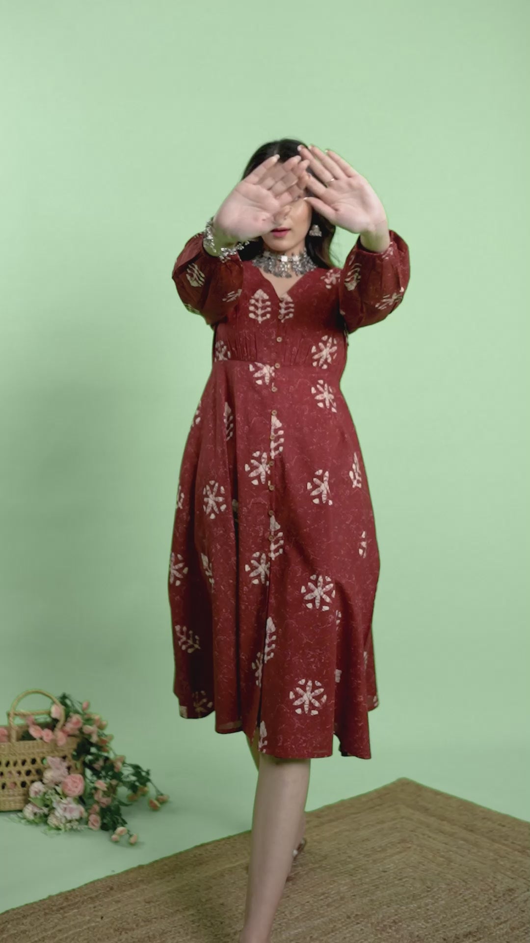 Maroon Cotton Floral Printed Flared Dress