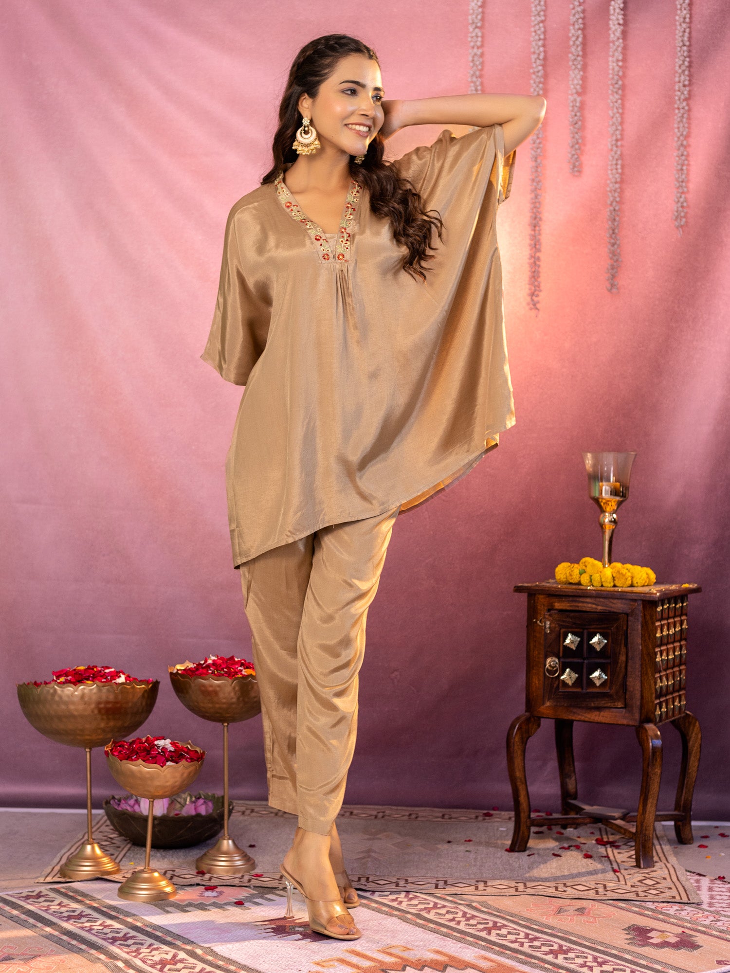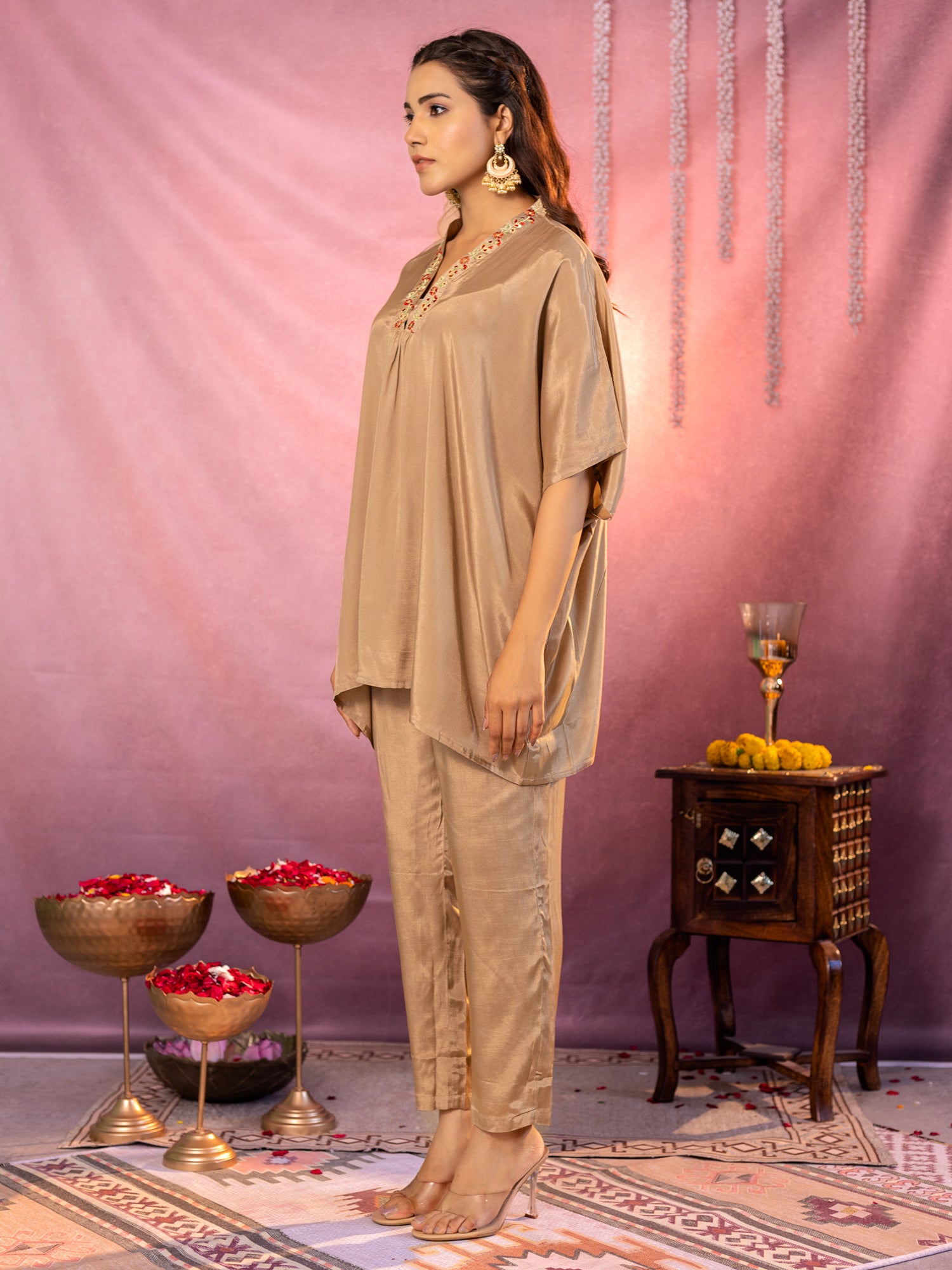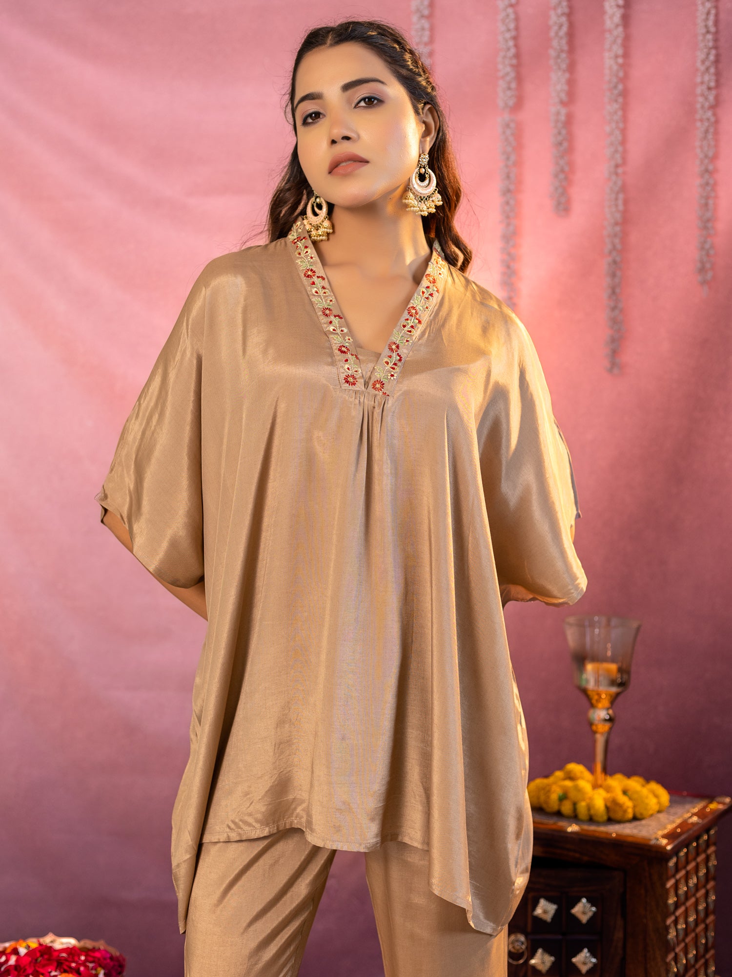 Beige Santoon V-Neck Kaftan Co Ord Set