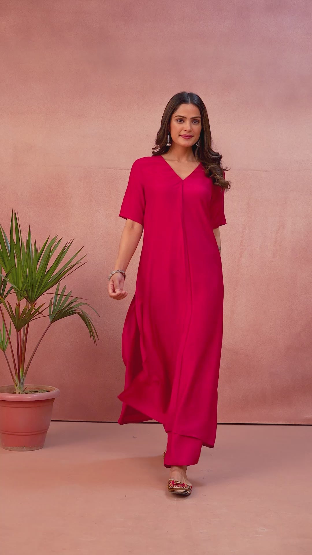 Cherry Red Solid Muslin A-Line Co-Ord Set