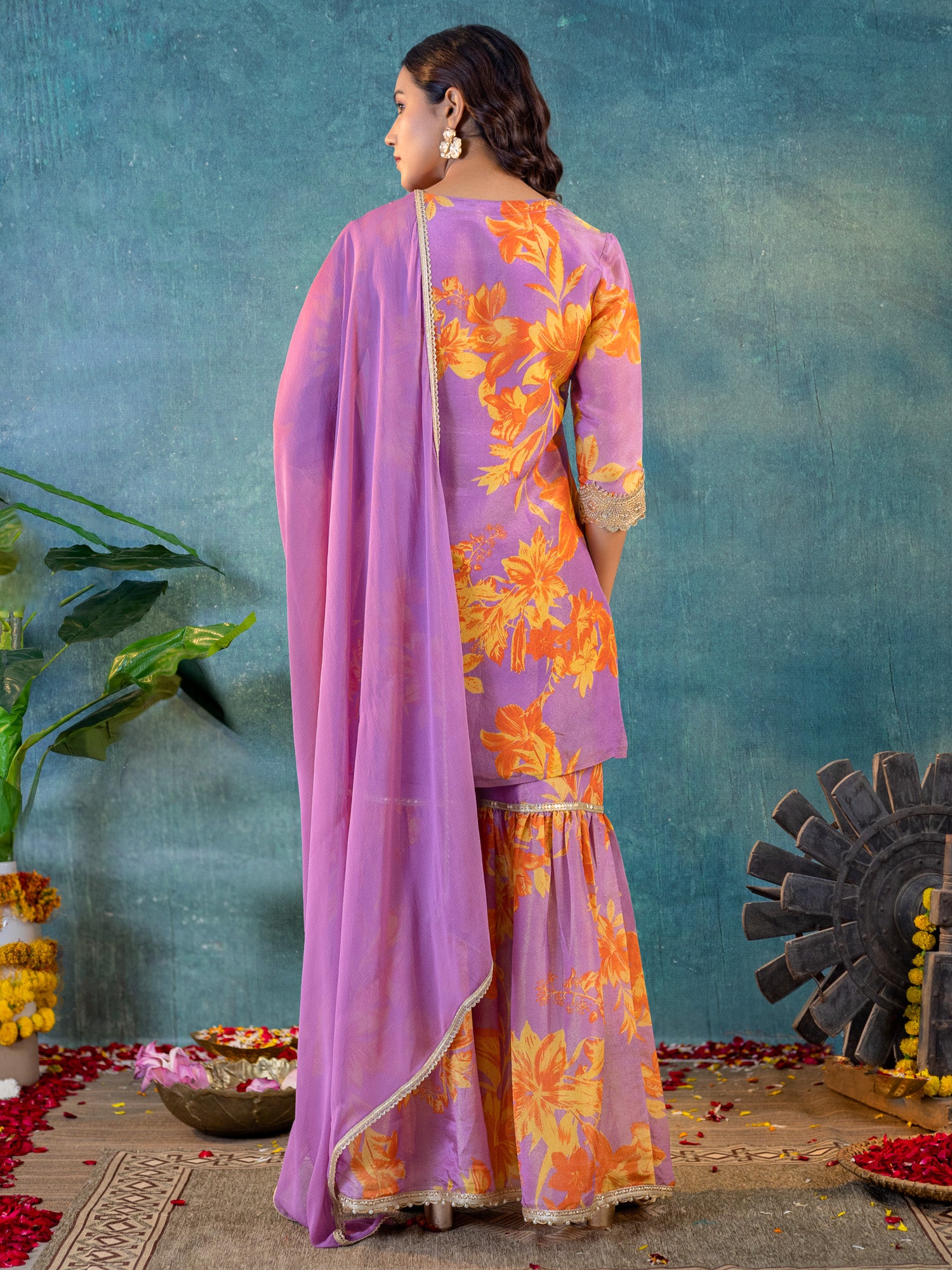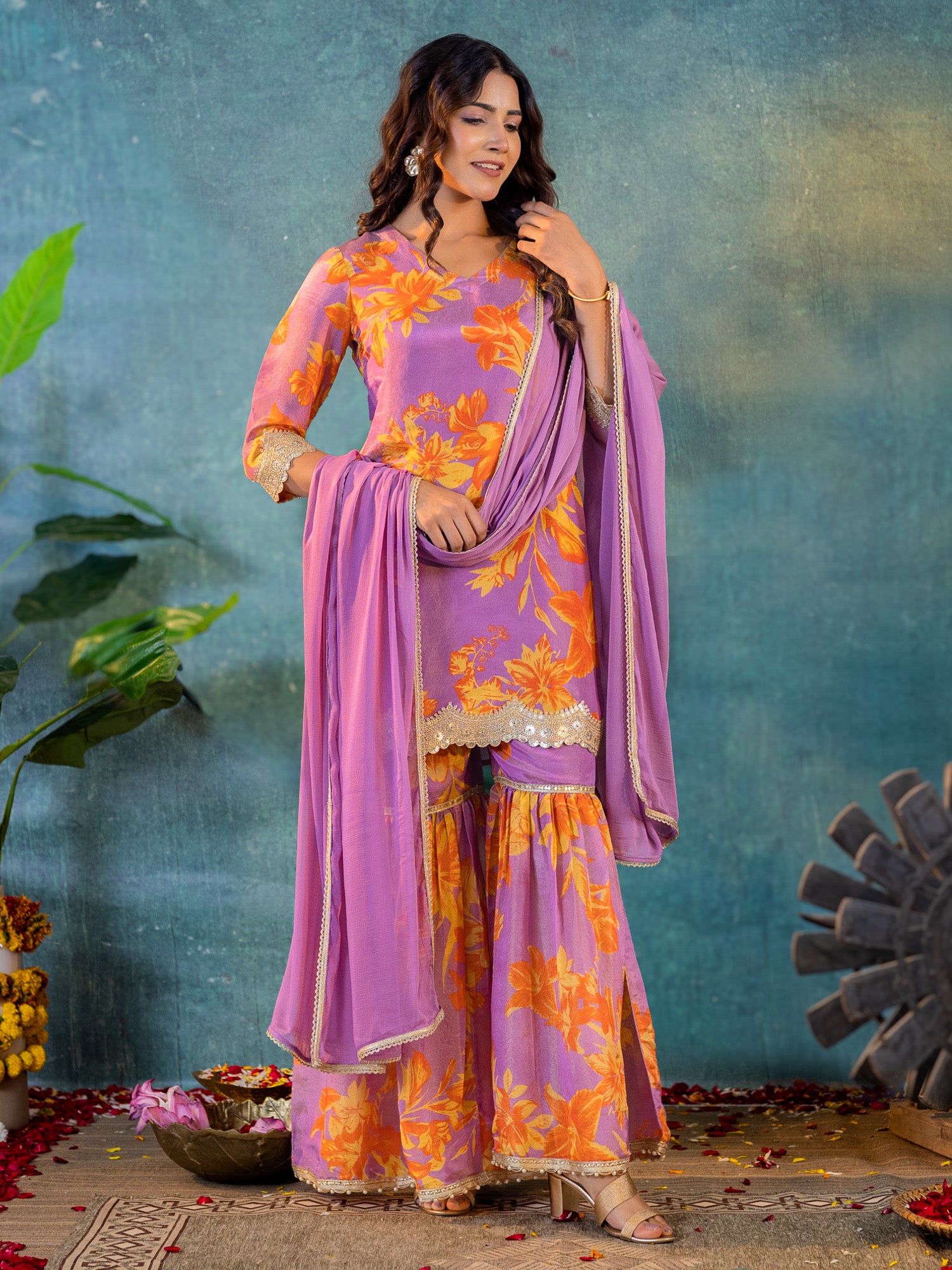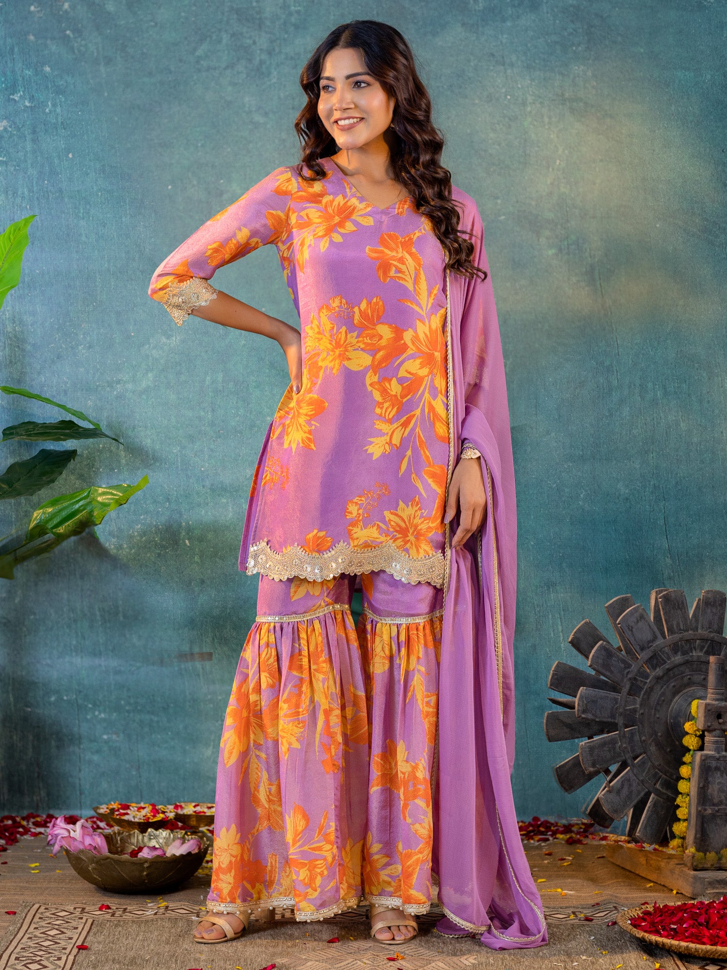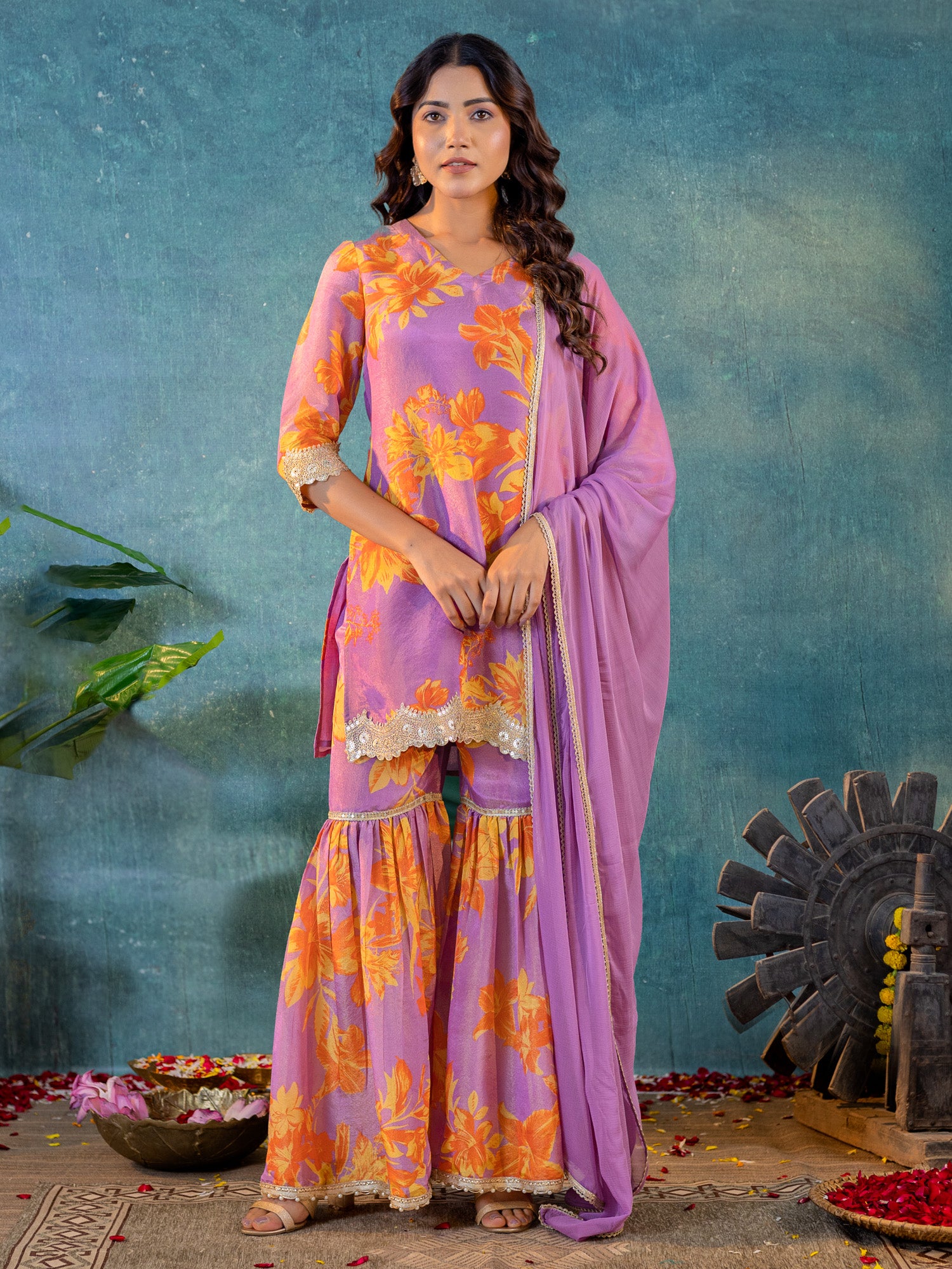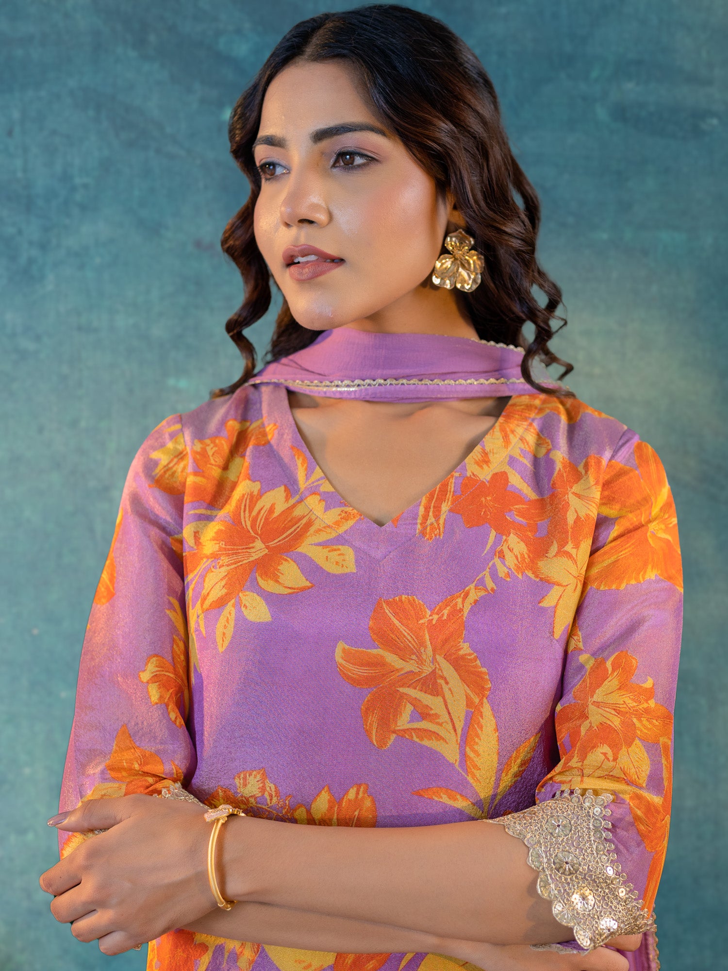 Elegant Purple Tissue Kurta Set with Soft Najneen Dupatta