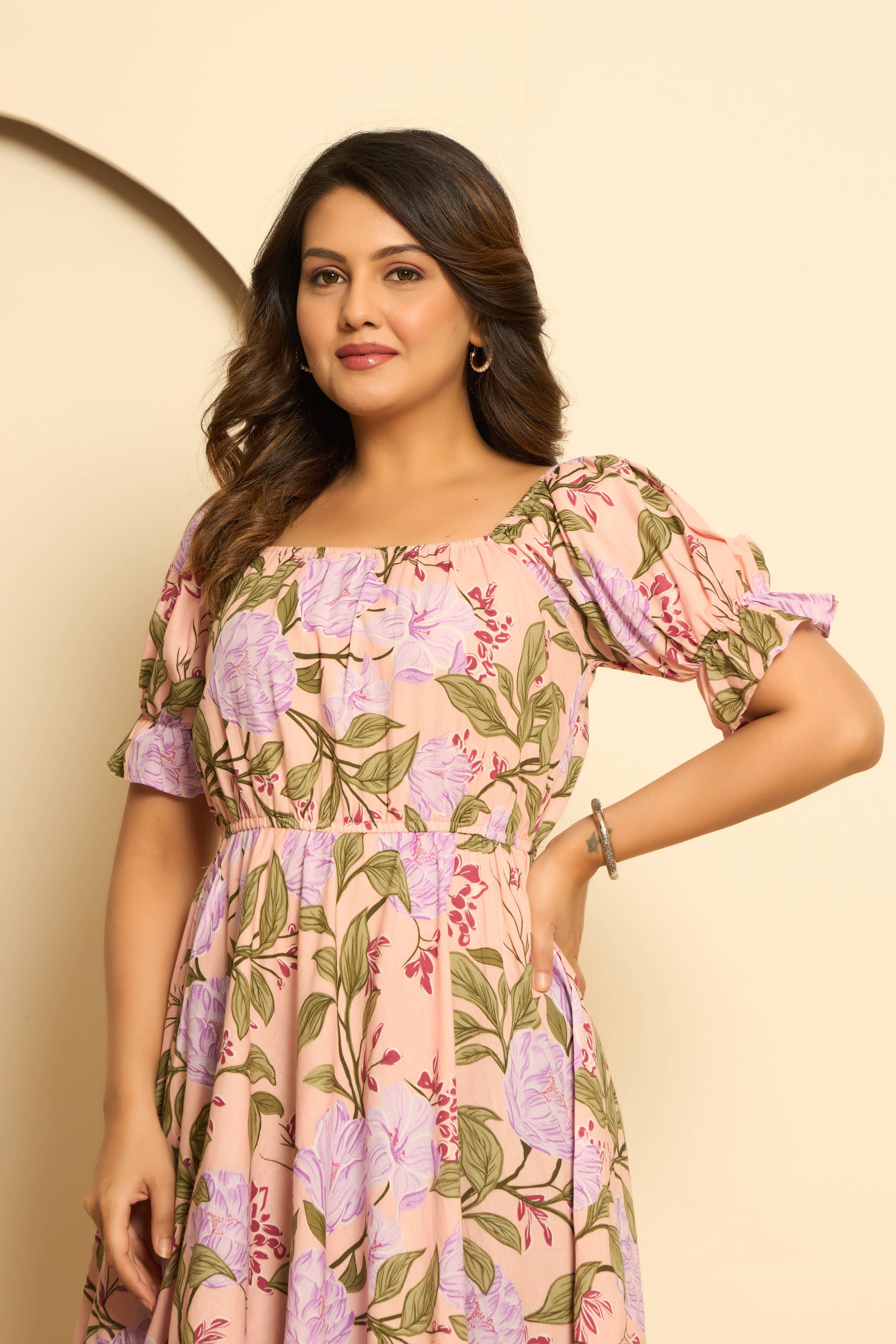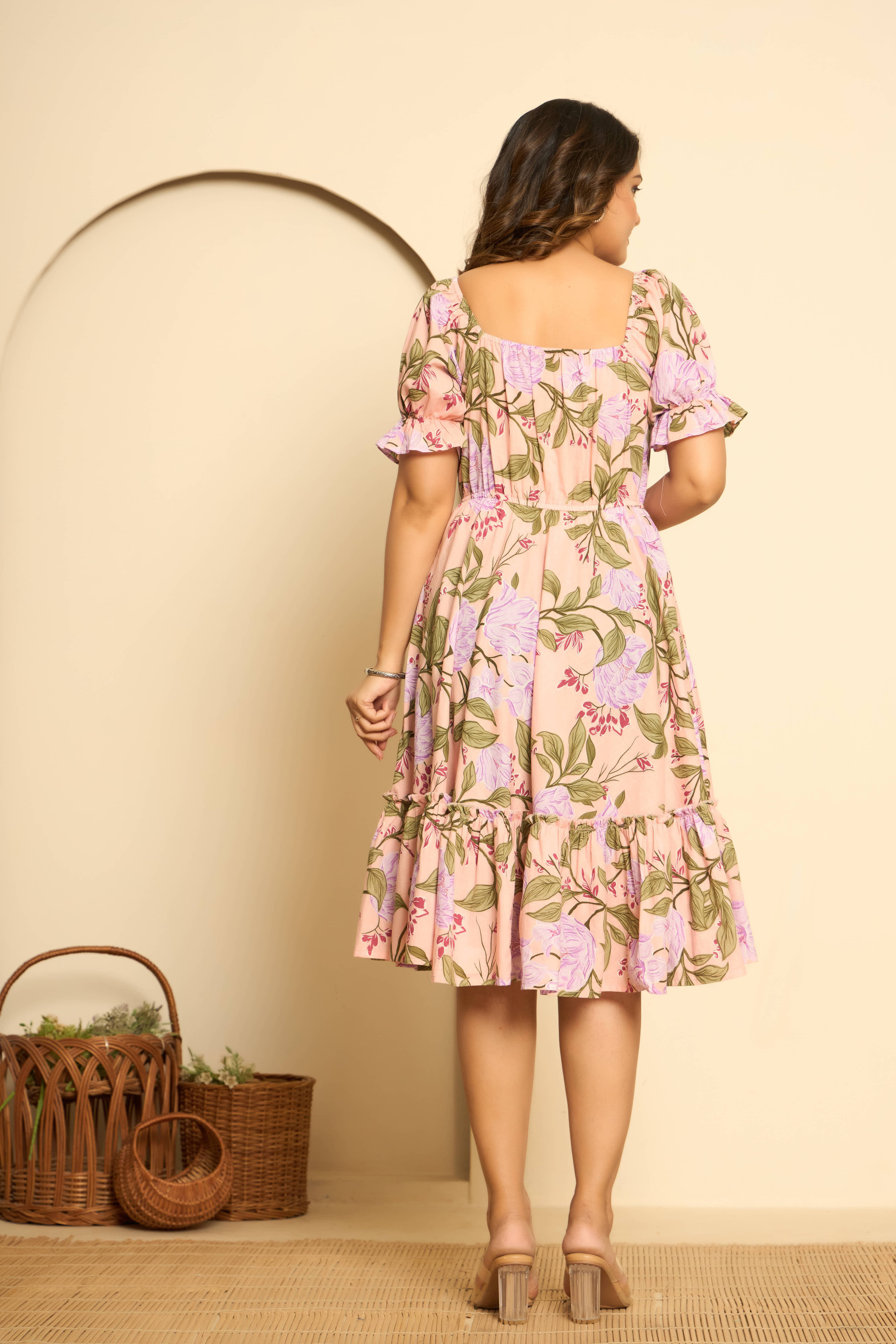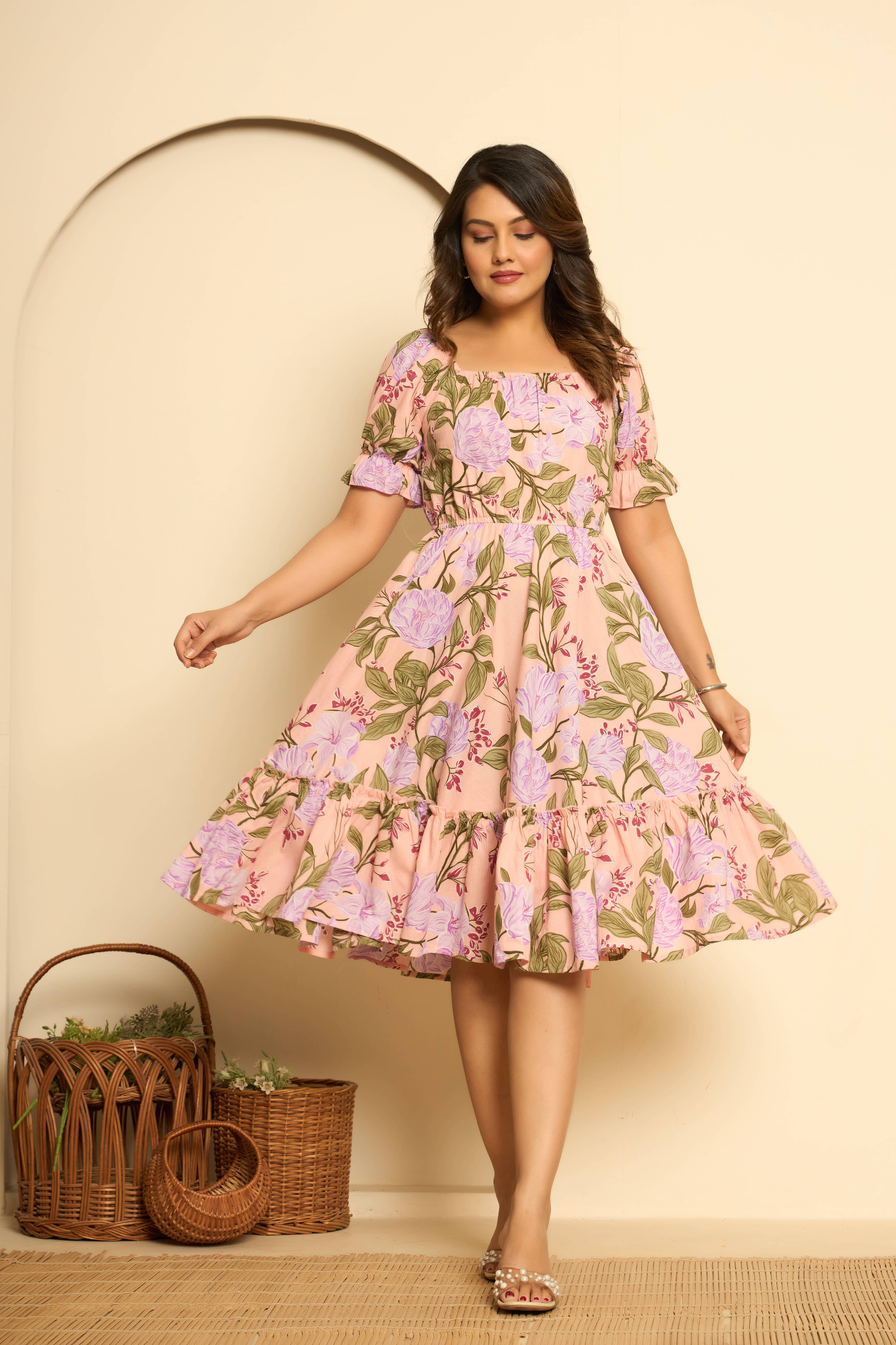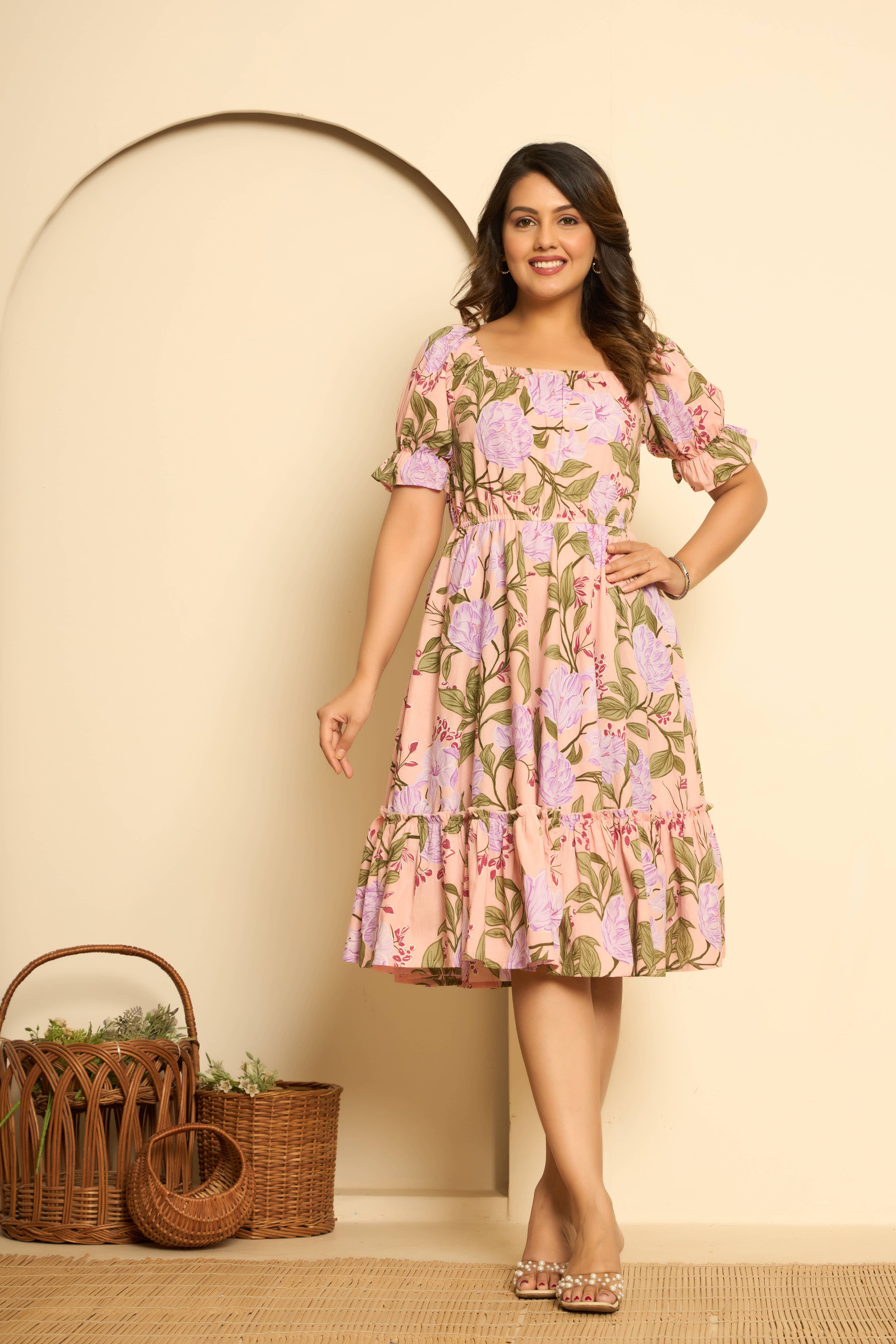 Pink Cotton Printed Midi Dress