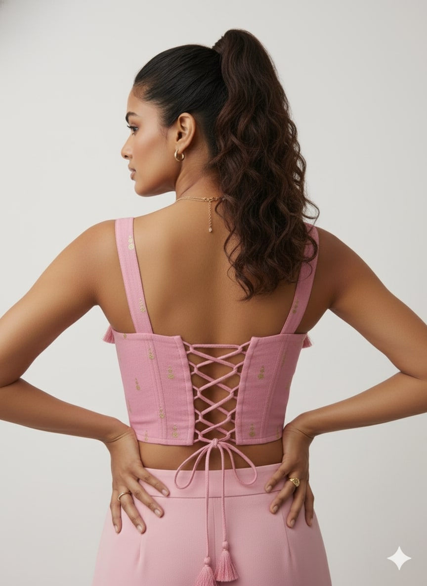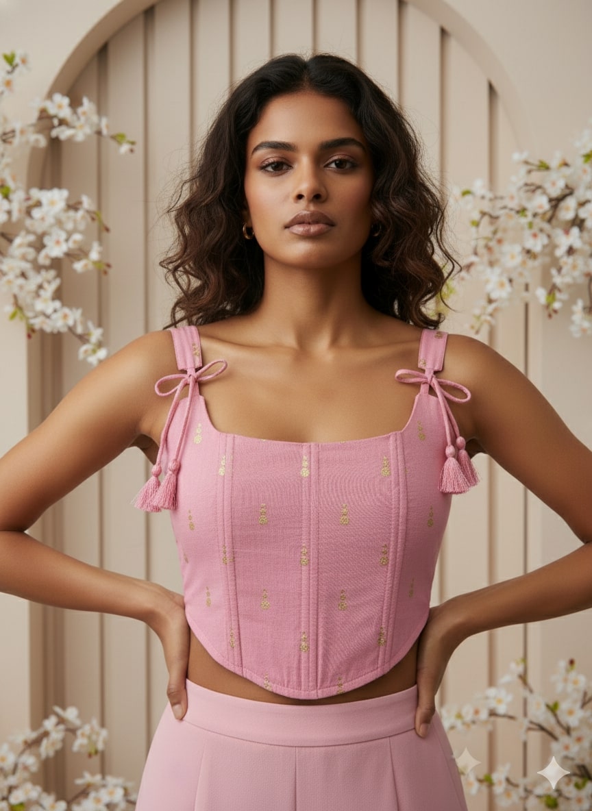 Pink Jacquard Corset Sleeveless
