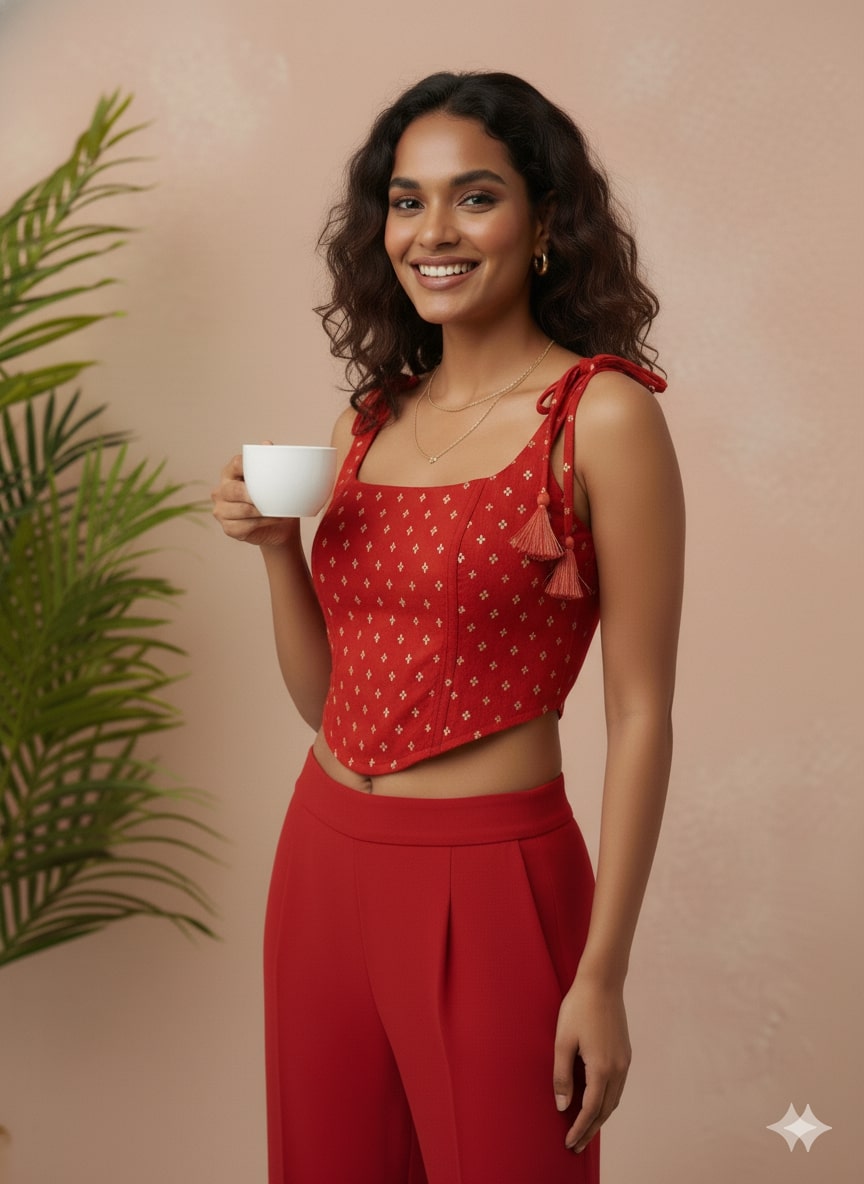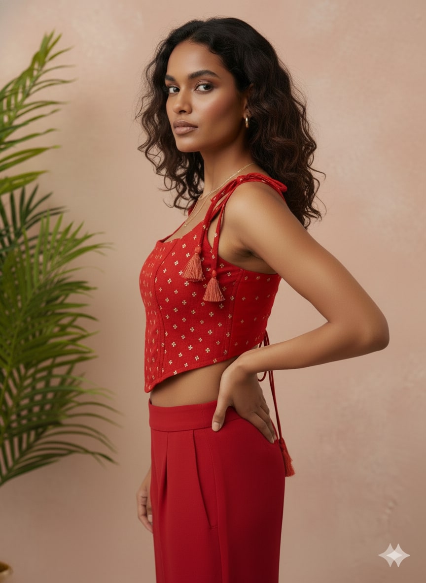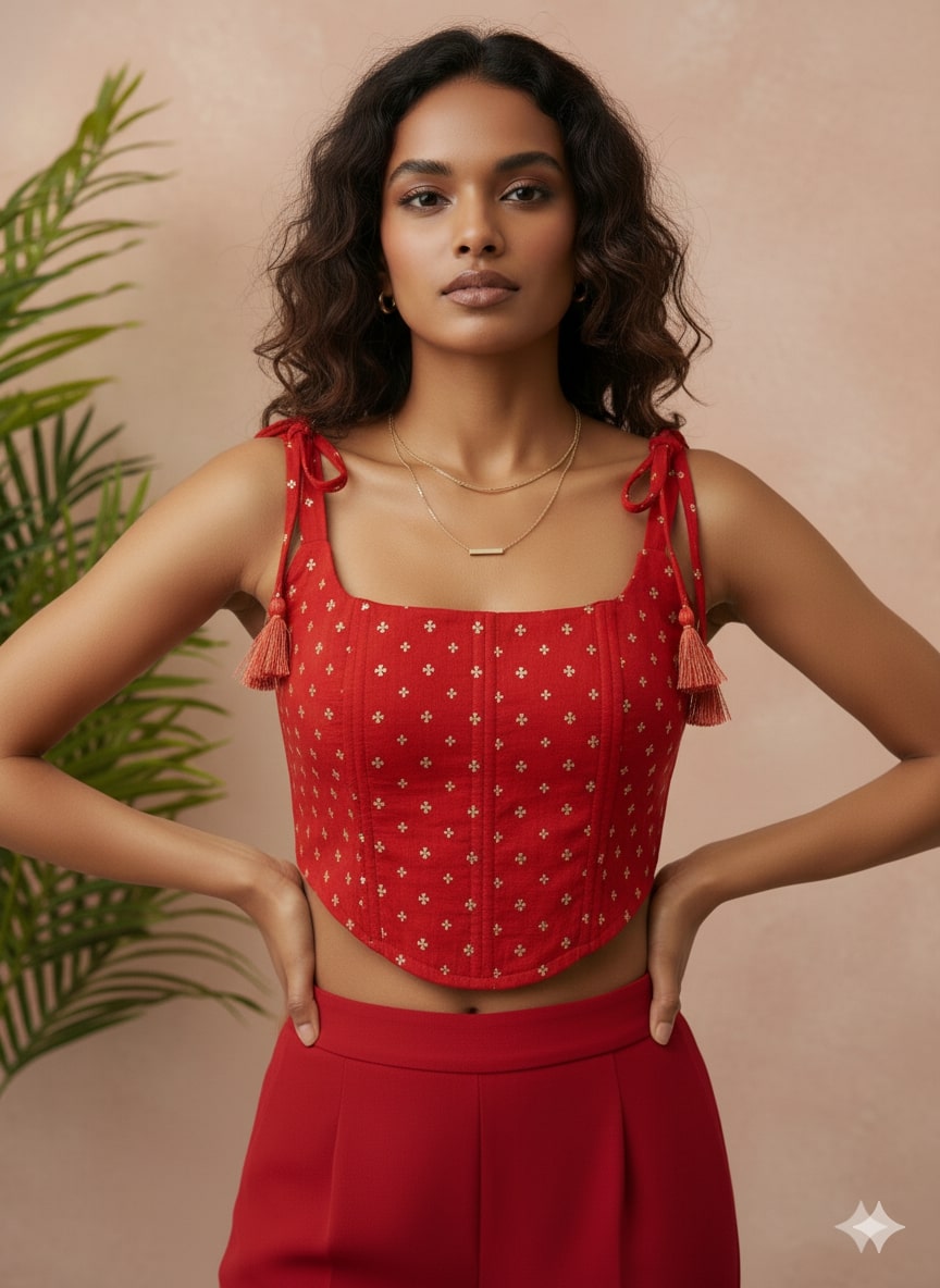 Rust Jacquard Corset Sleeveless