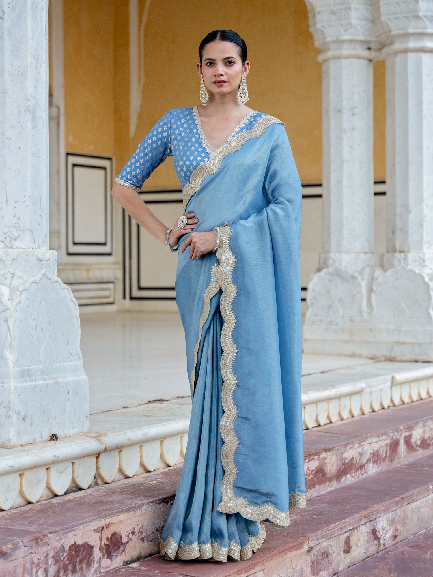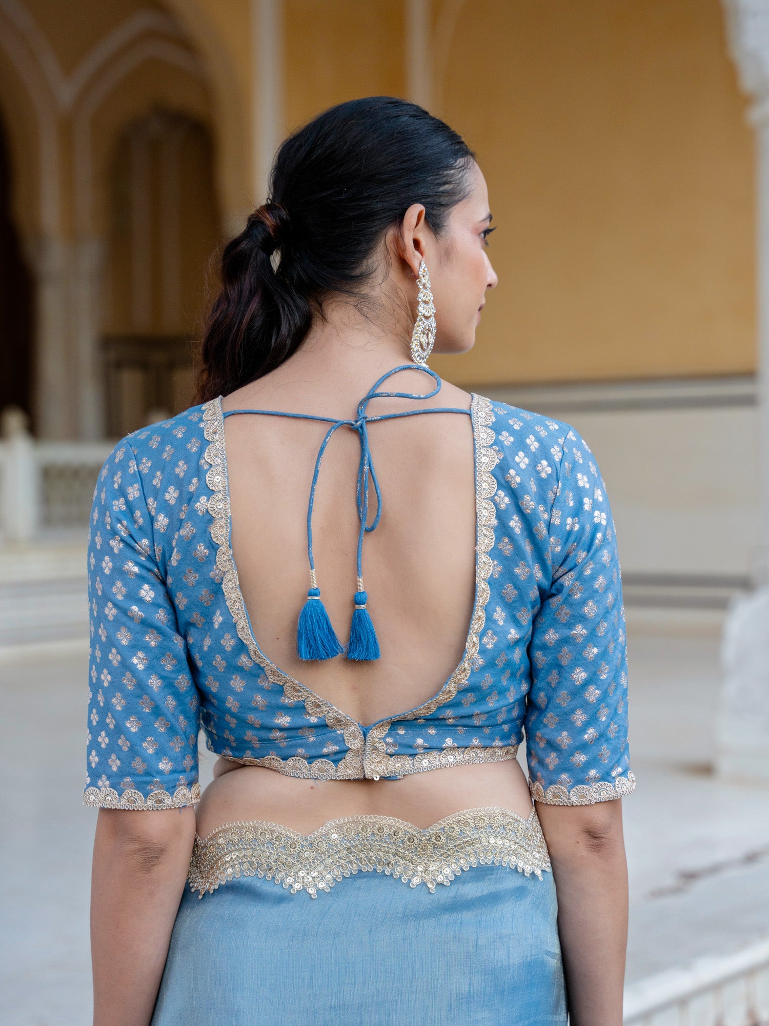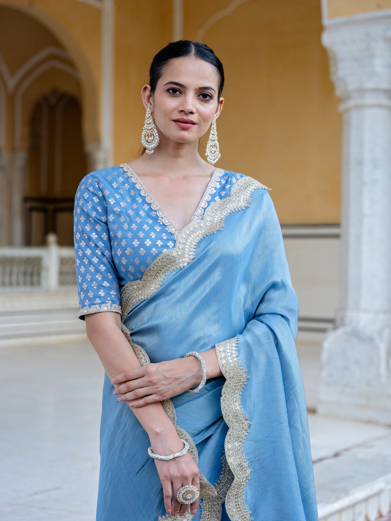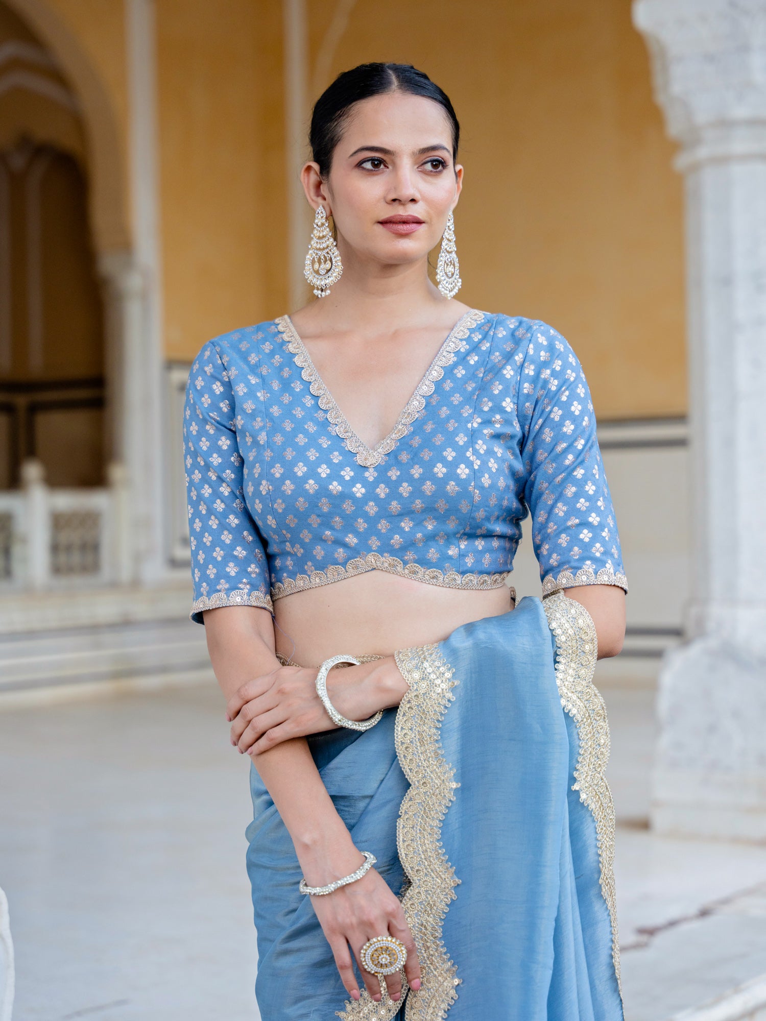 Blue Festive Saree in Premium Tissue Fabric with Jacquard Blouse