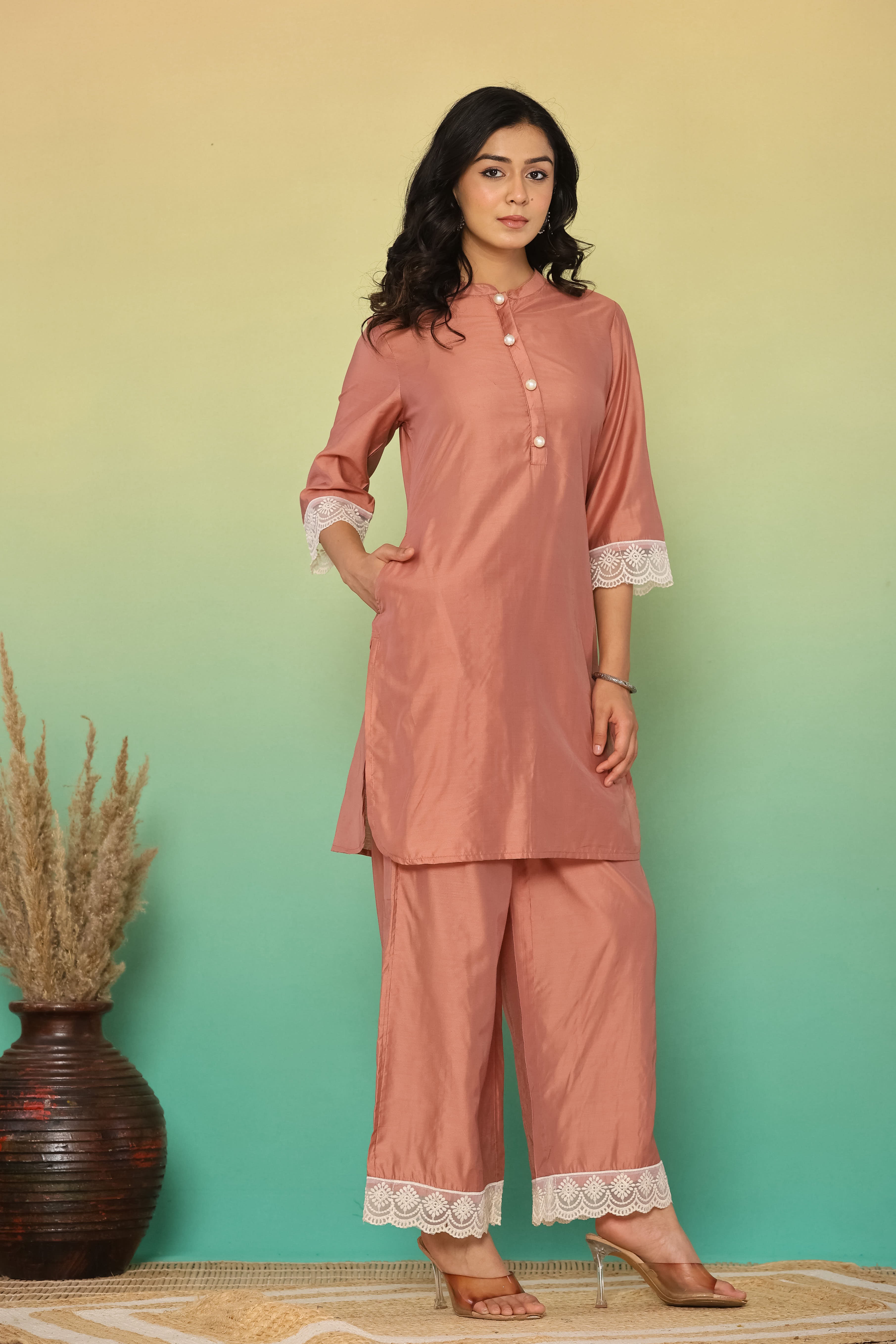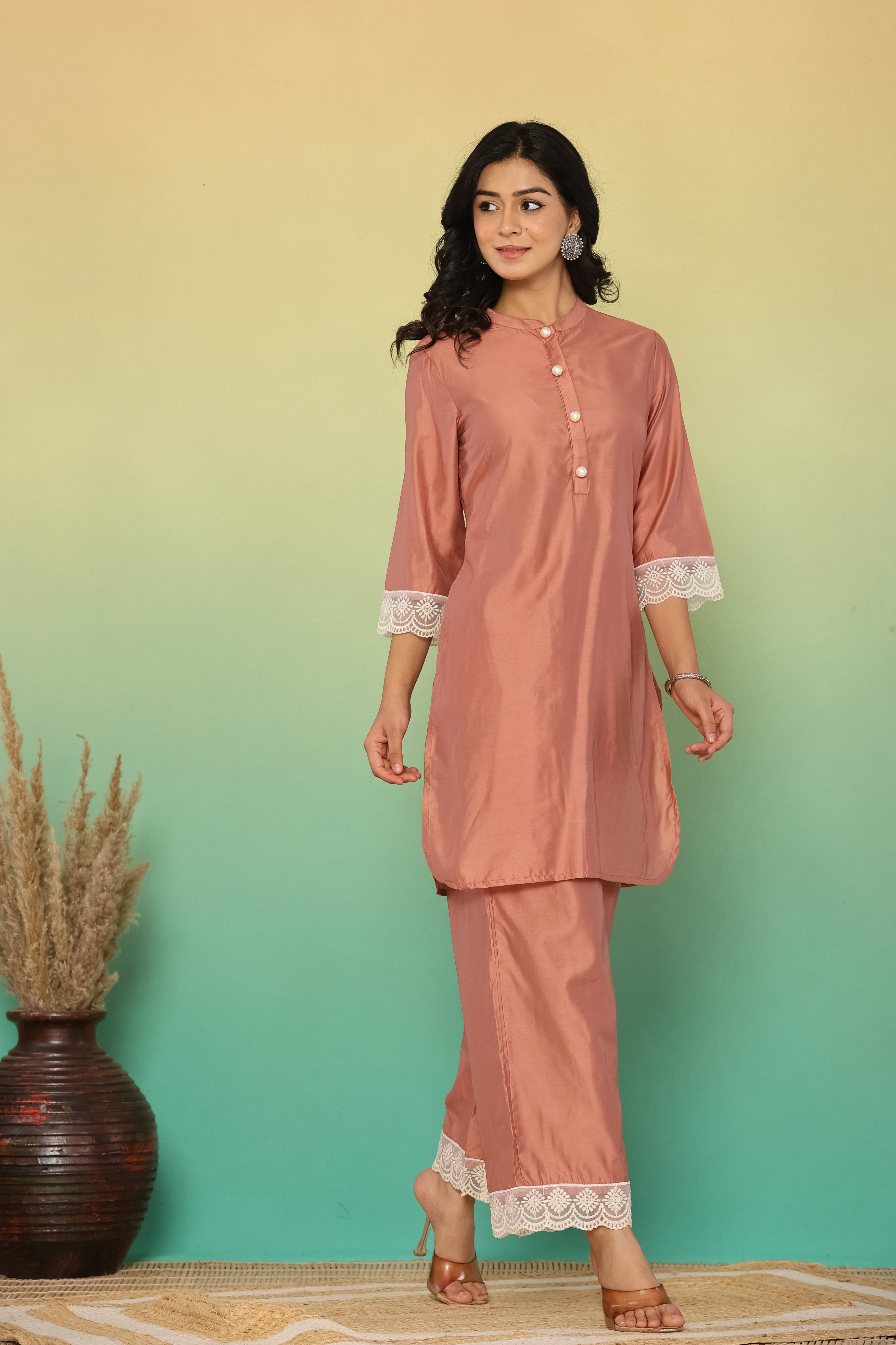 Mocha Brown Chanderi Co-Ord Set