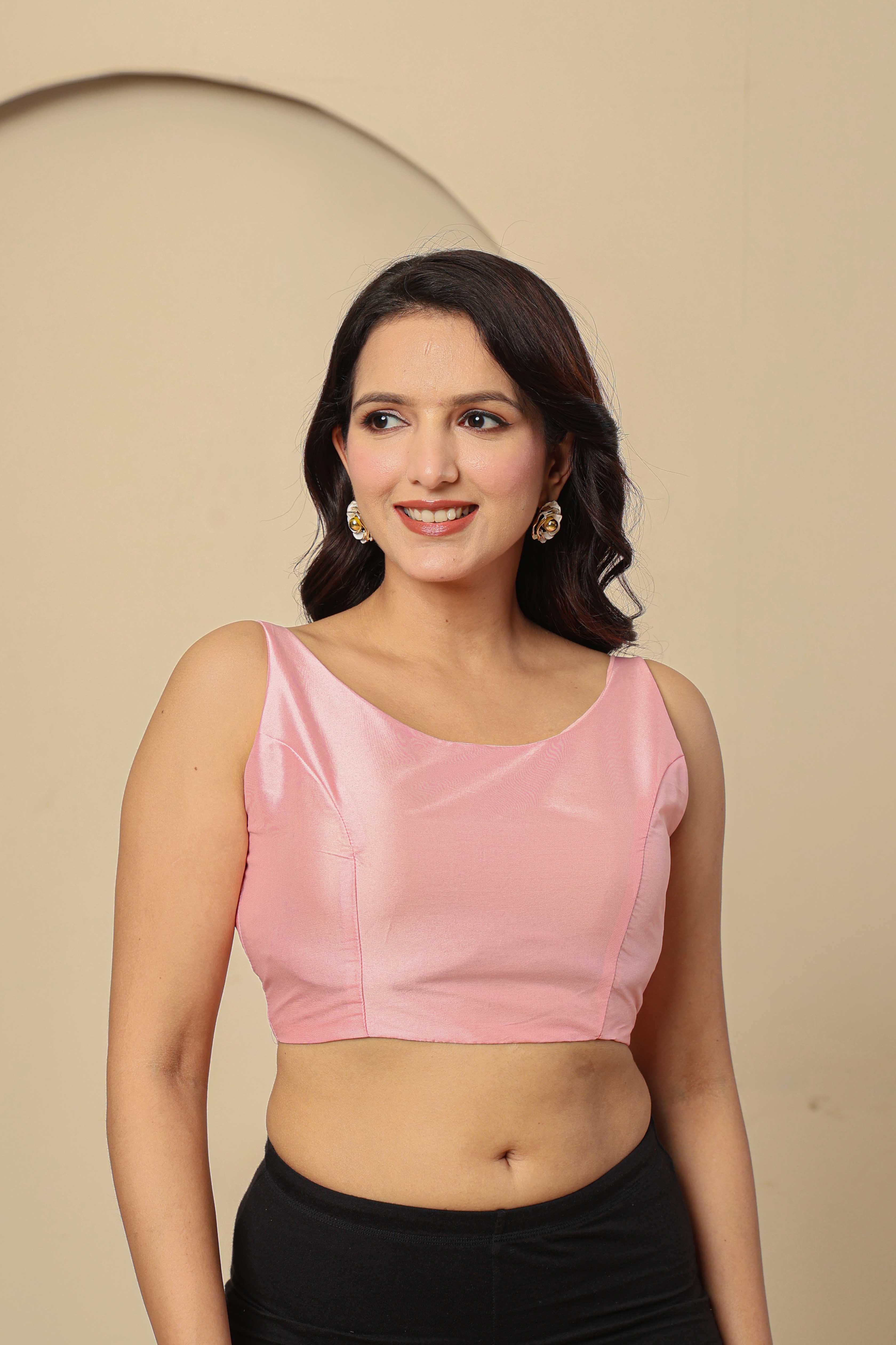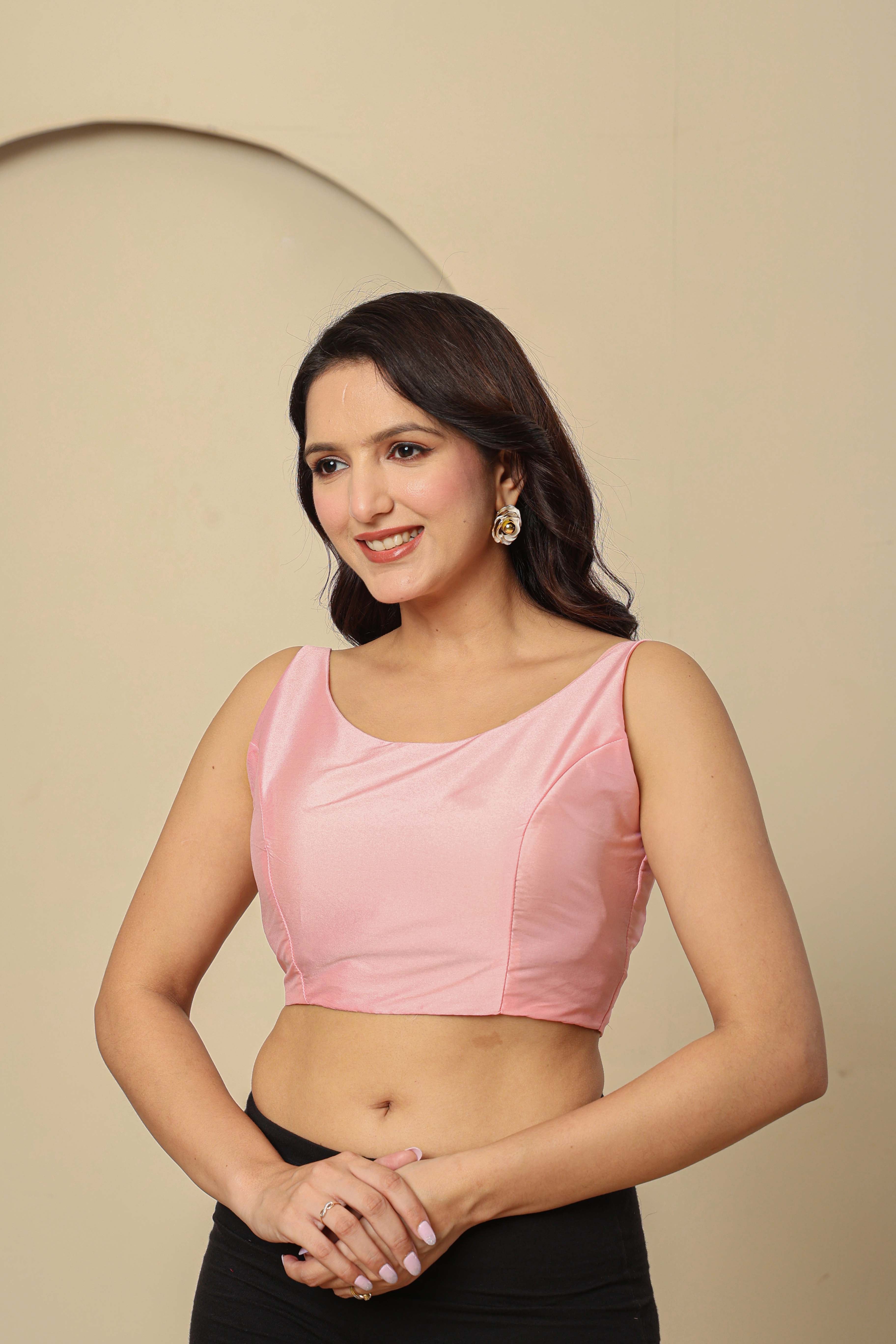 Pink Viscose Festive Sleeveless Blouse