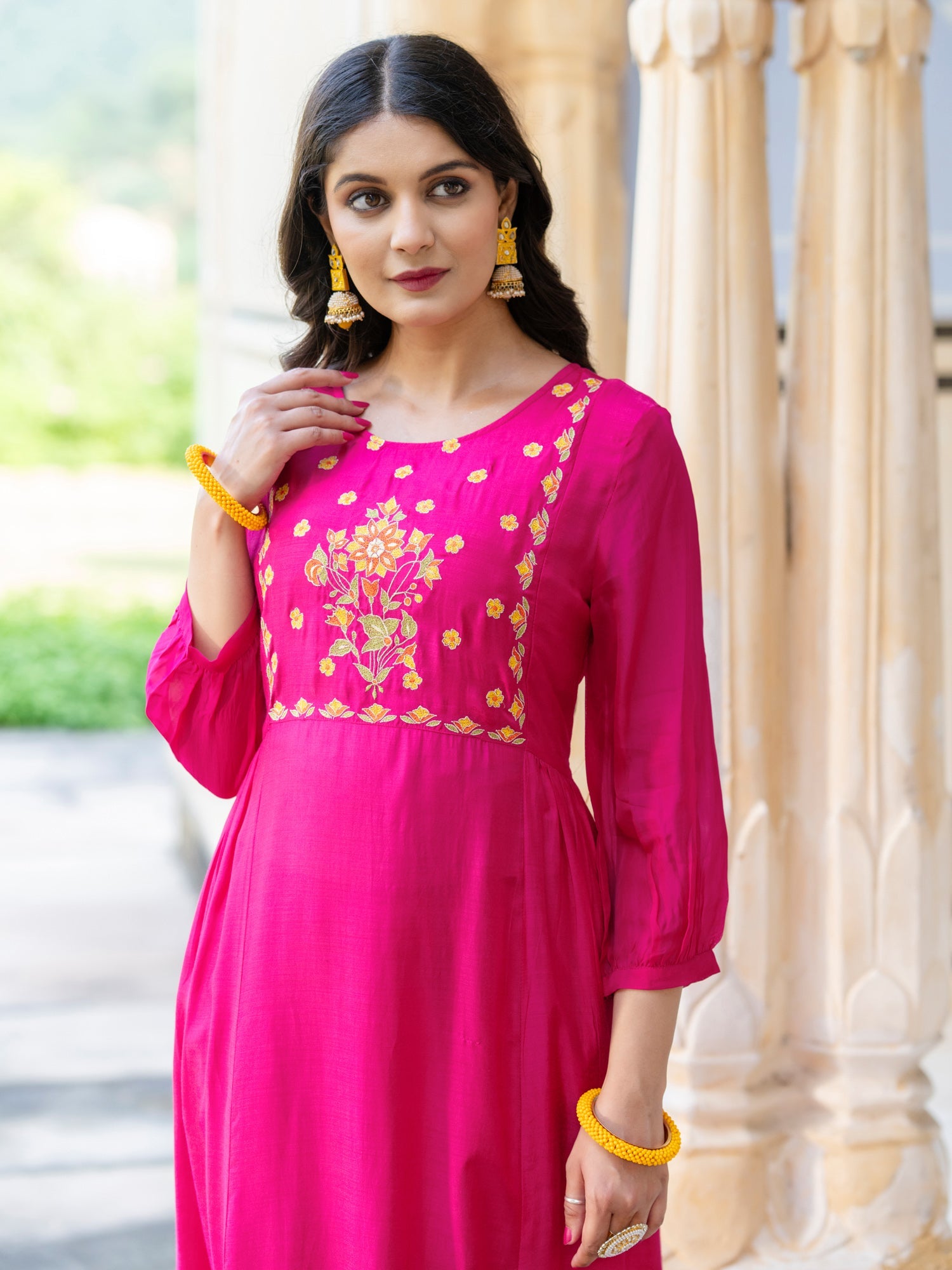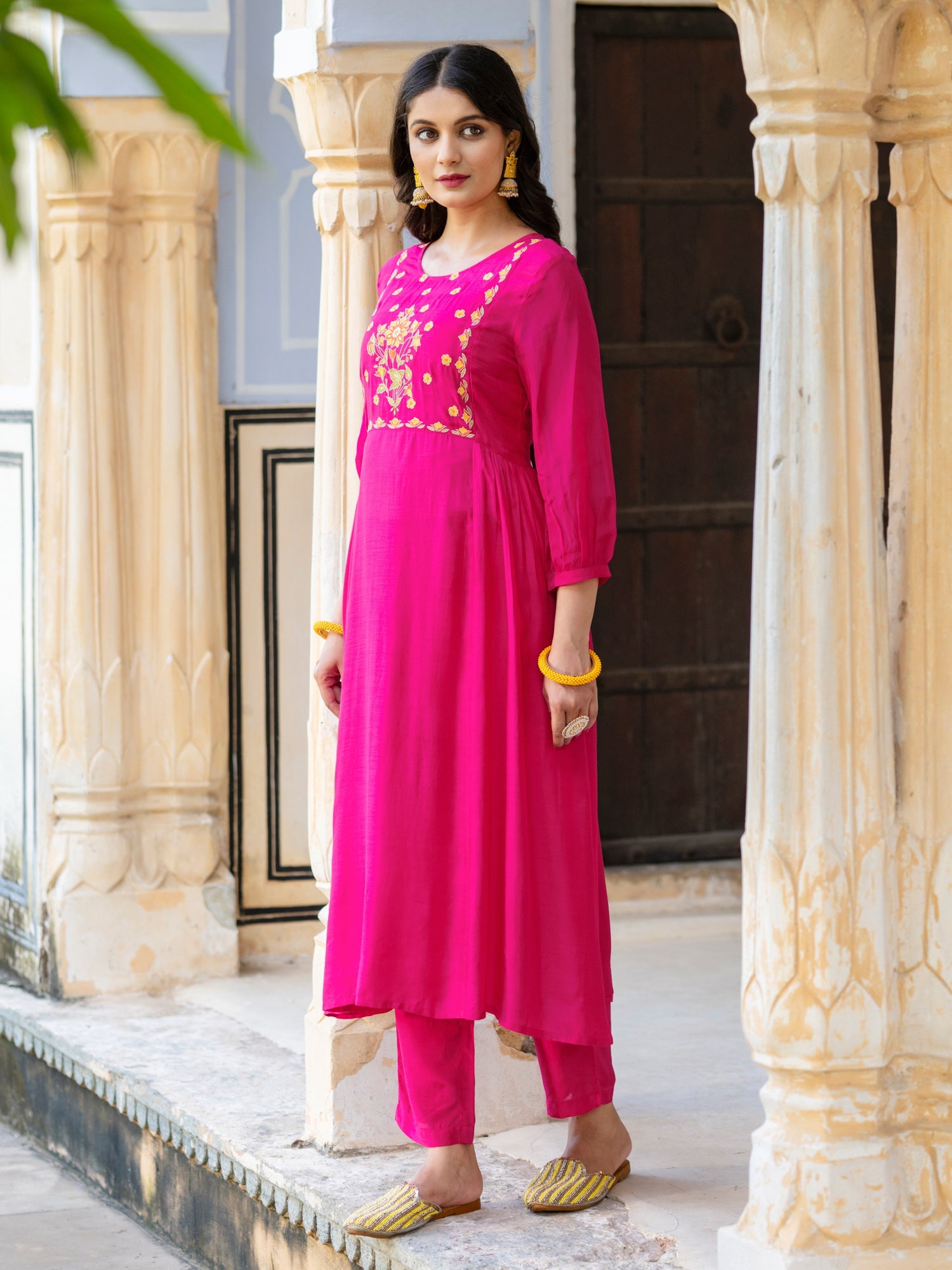 Pink Viscose Floral Embroidered Co-Ord Set