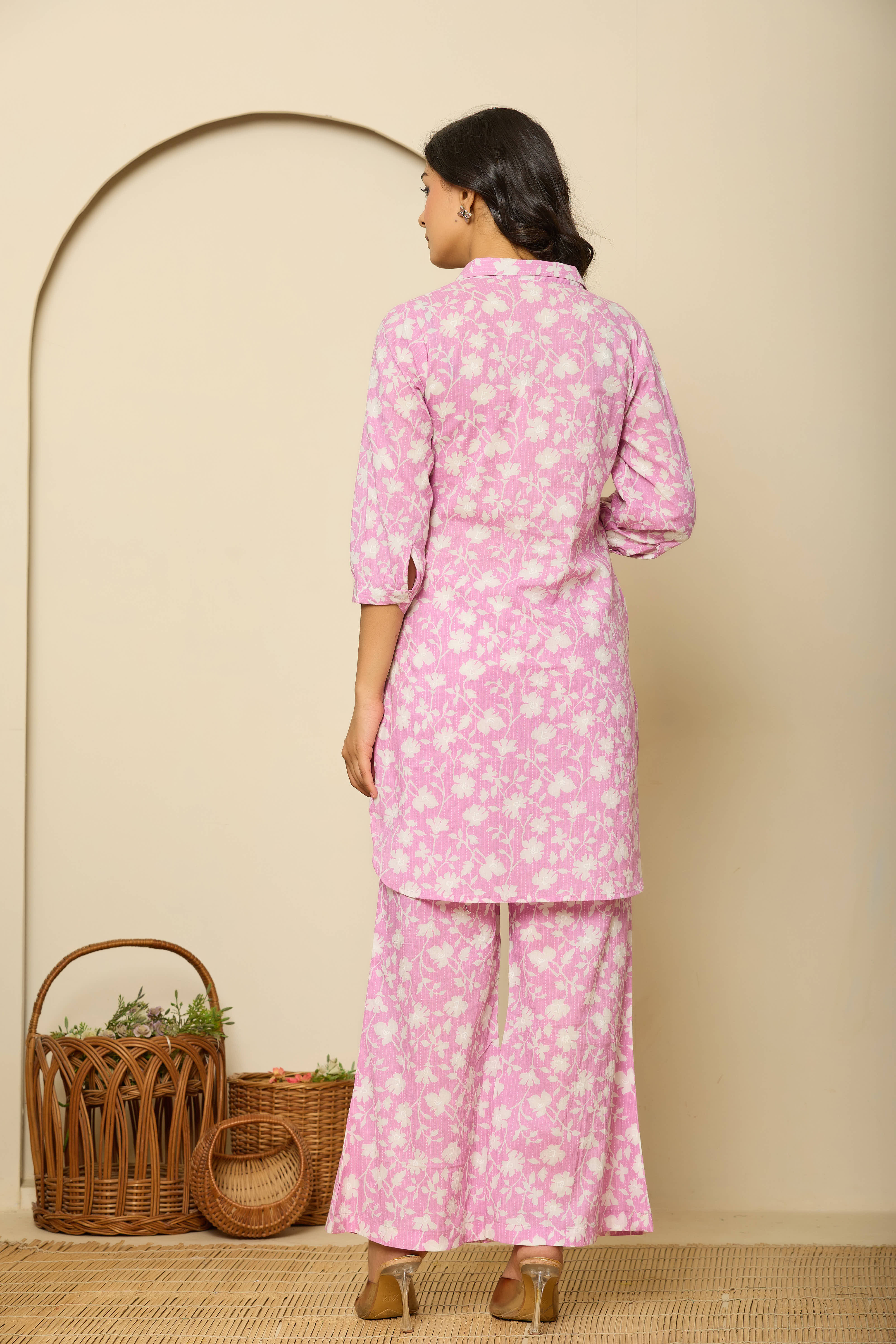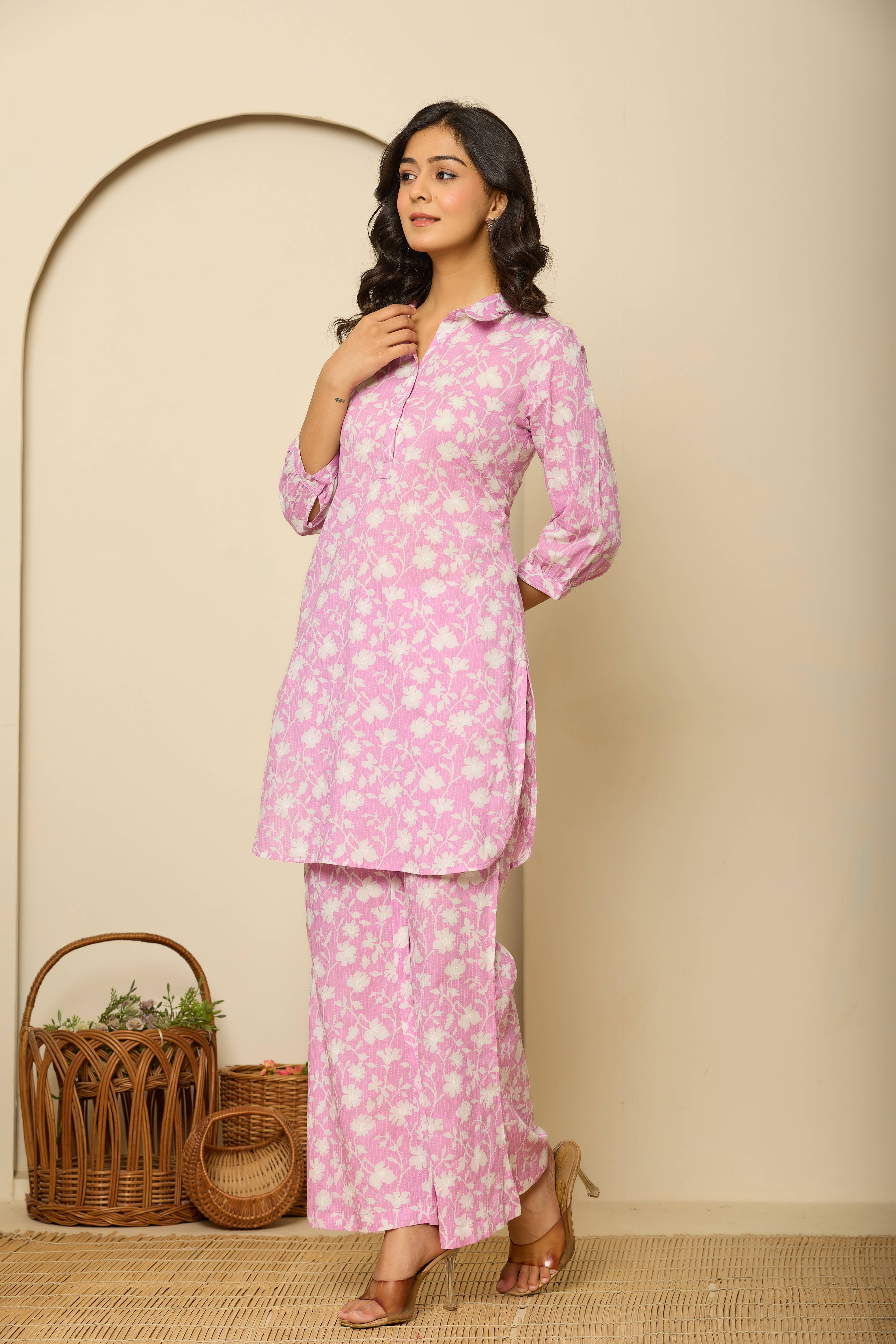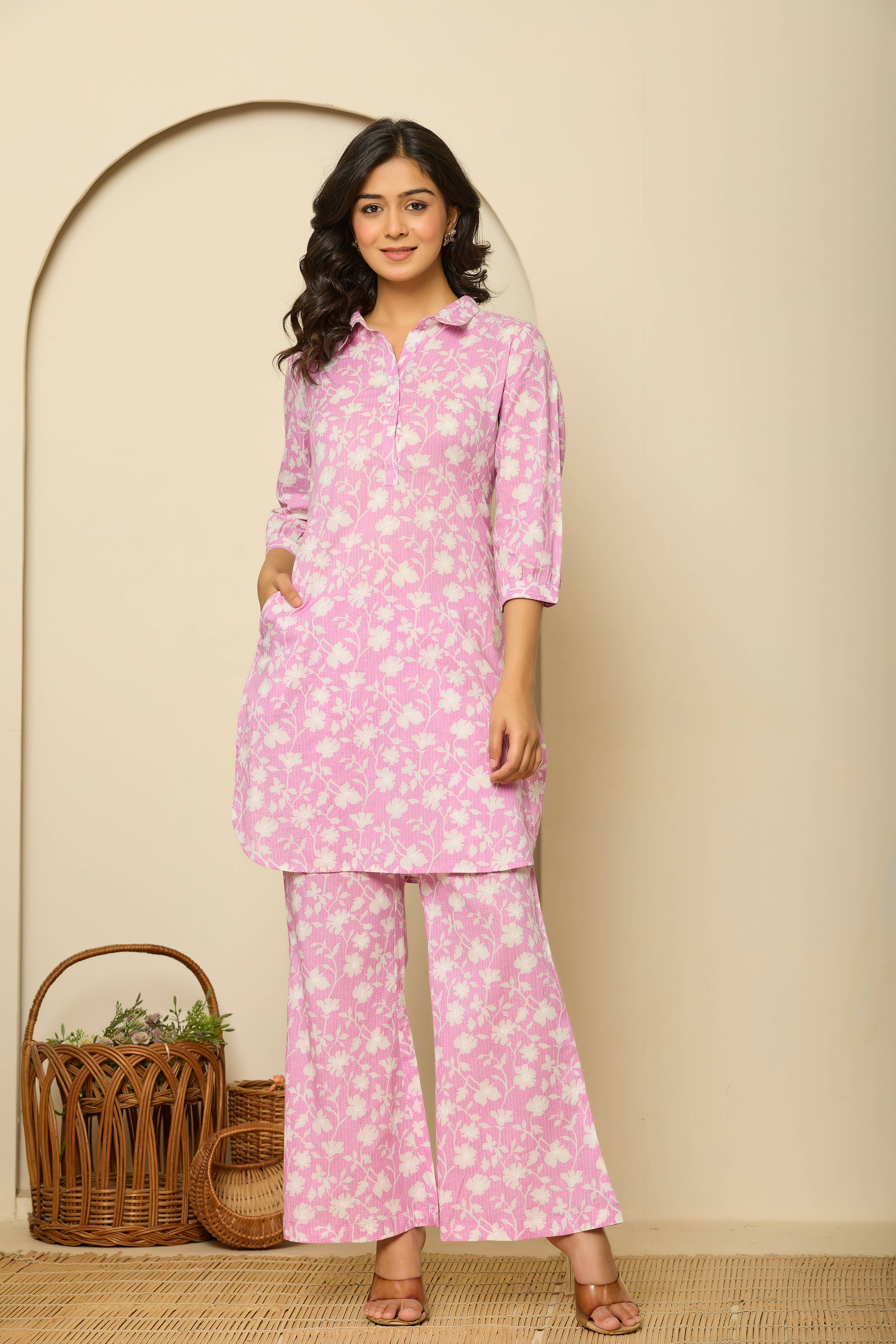 Purple Printed Pure Cotton Pathani Kurta Co-Ord Set