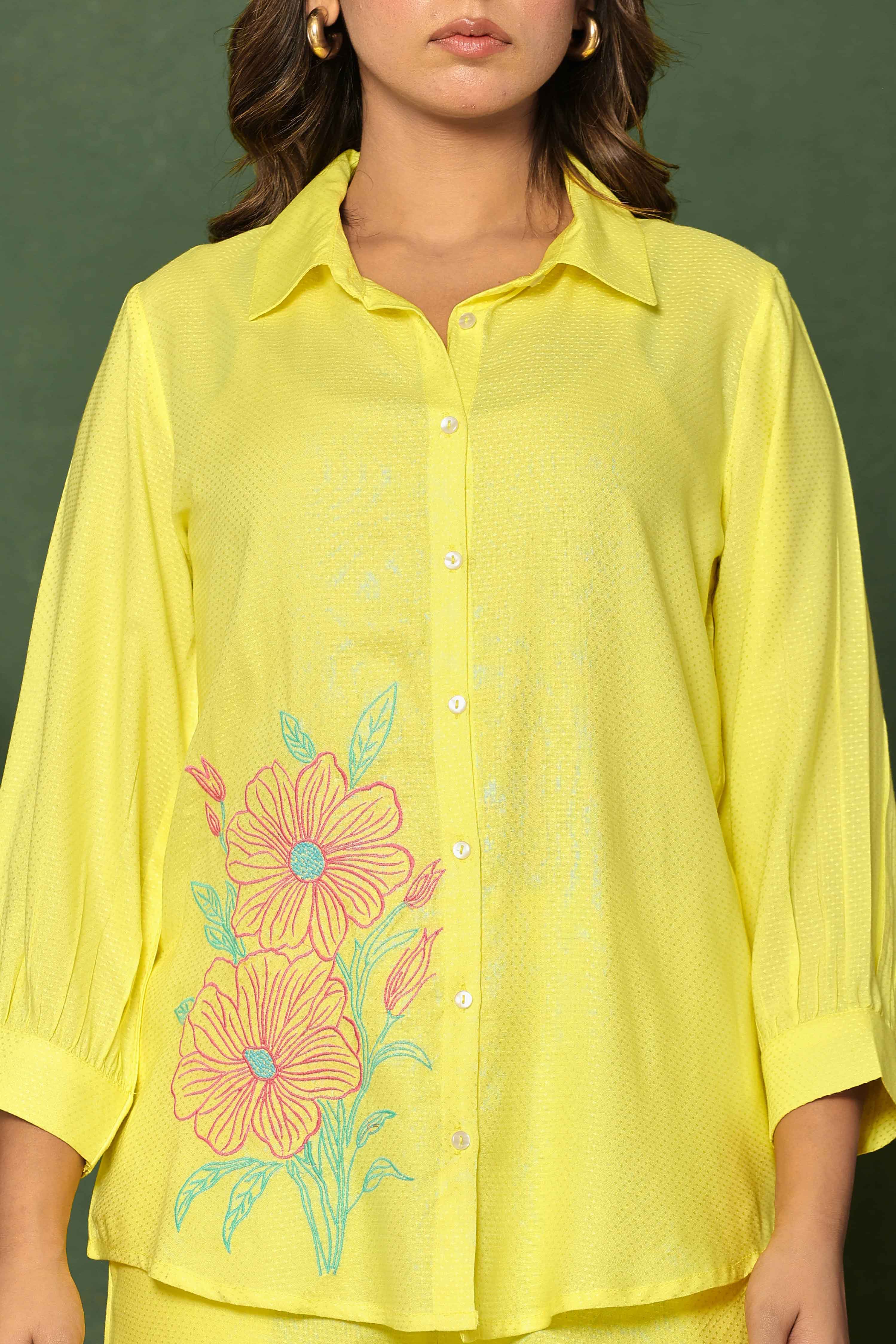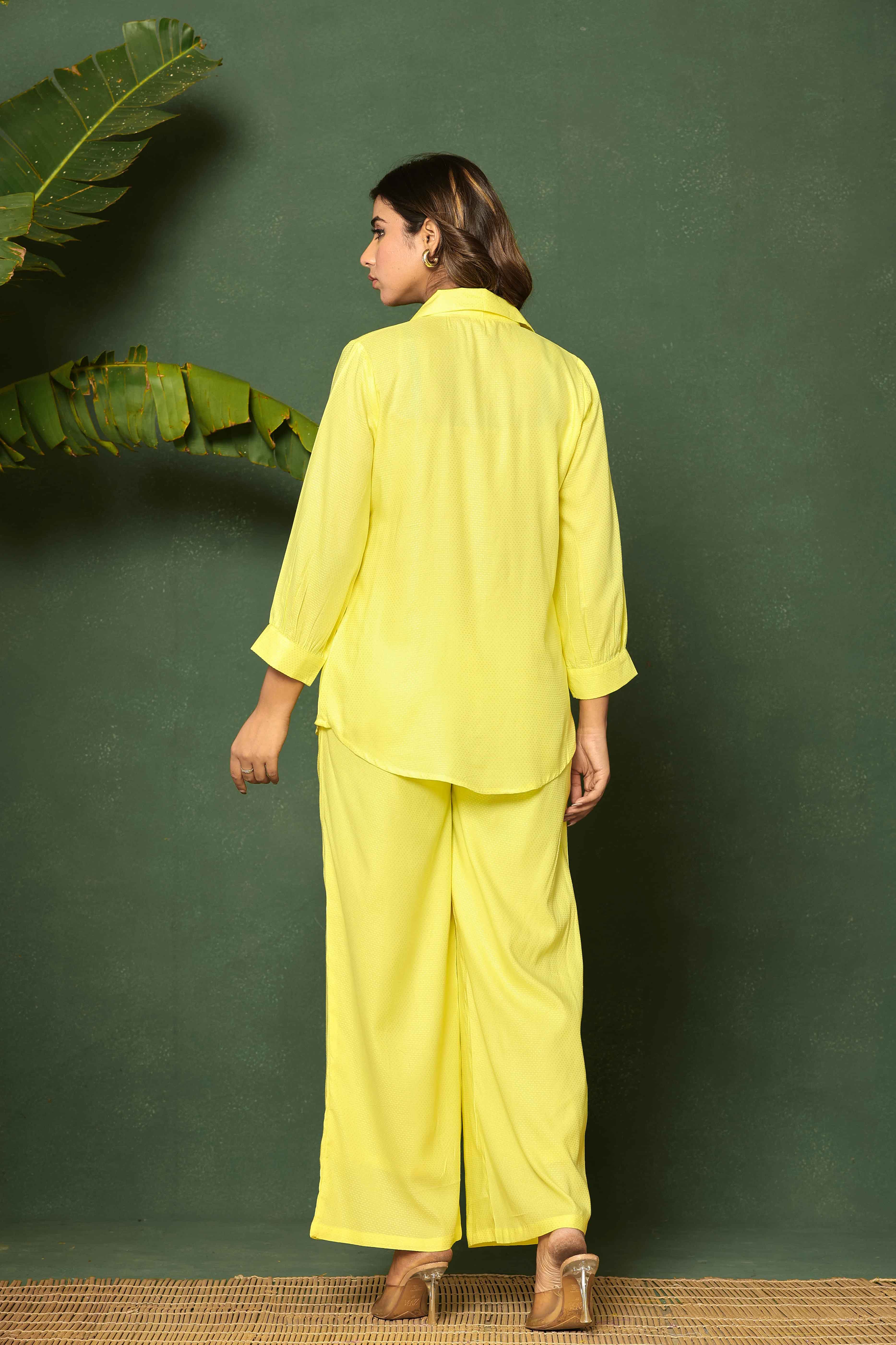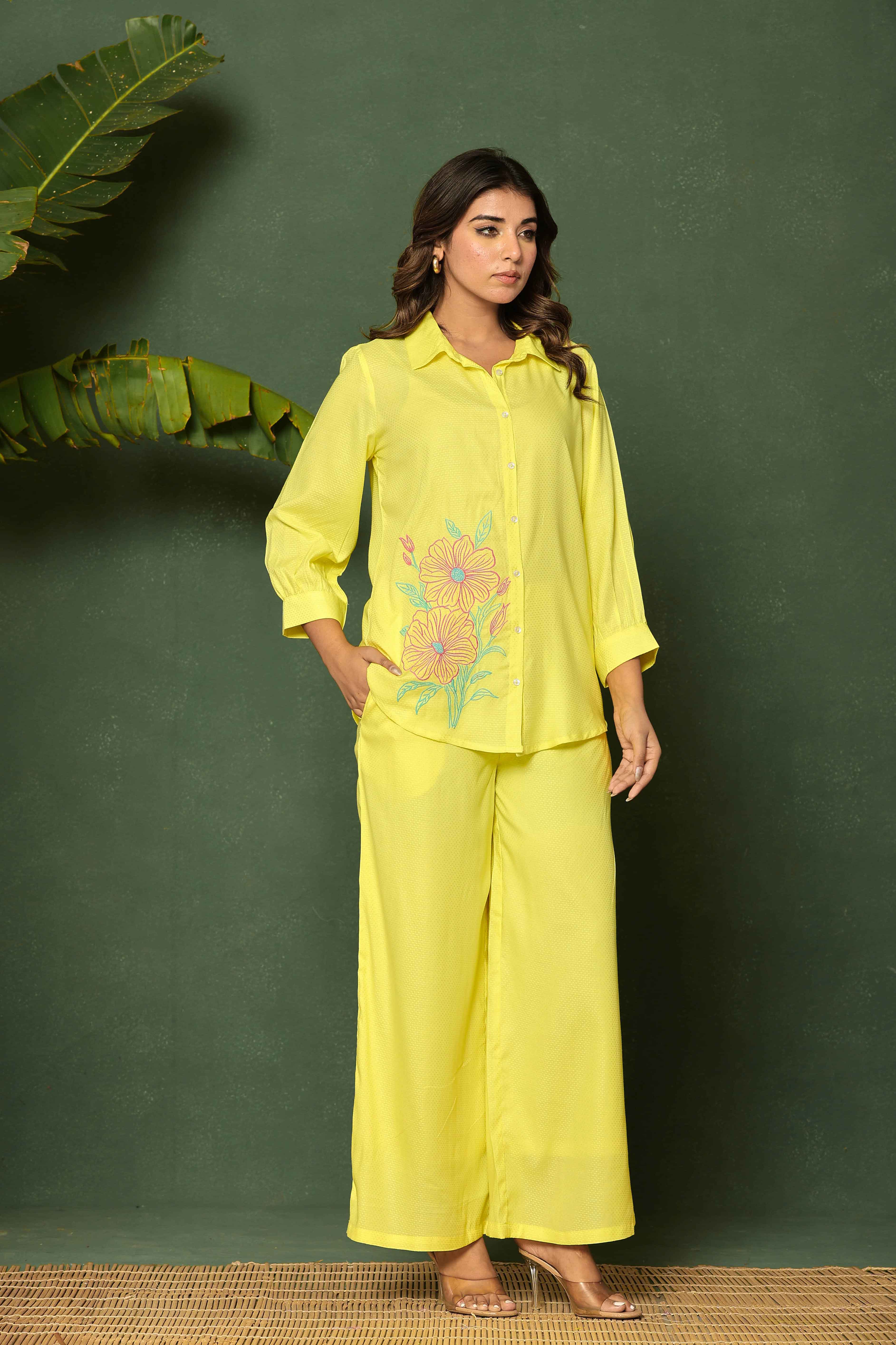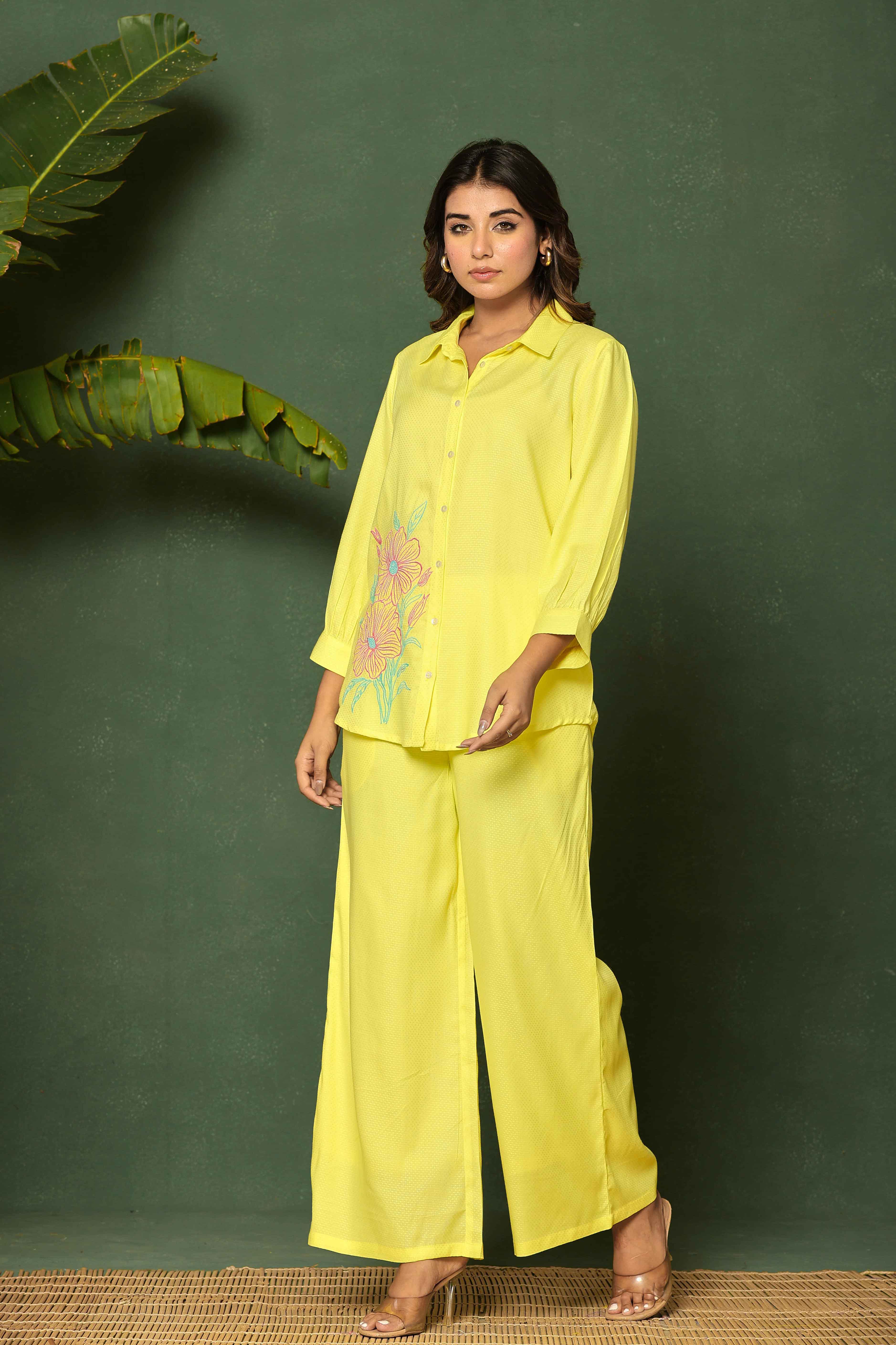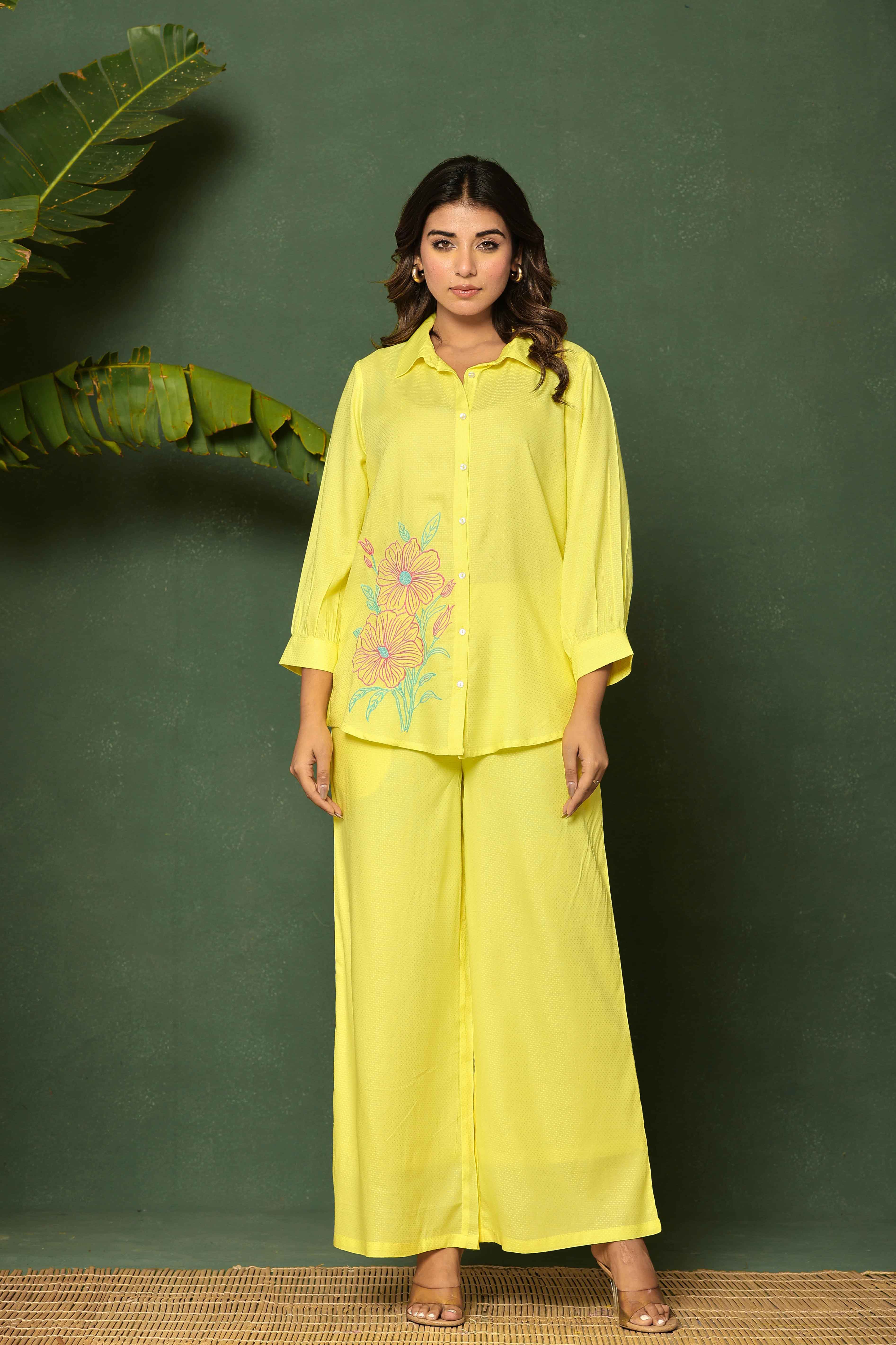 Yellow Embroidered Pure Viscose Co-Ord Set